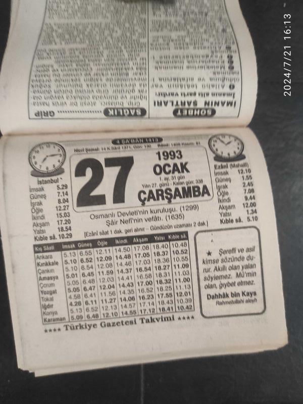 Türkiye Gazetesi takvimi 27 Ocak 1993 doğum günü hediyesi hediyelik takvim yaprağı, en son 1 yıl önce güncellenmiştir.