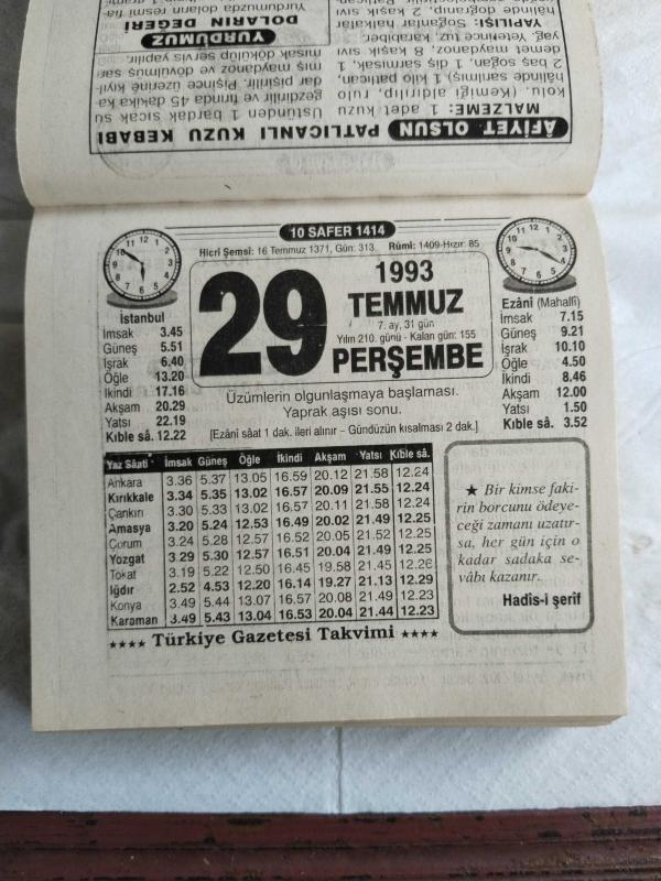 Türkiye Gazetesi takvimi 29 Temmuz 1993 doğum günü hediyesi hediyelik takvim yaprağı, en son 1 yıl önce güncellenmiştir.
