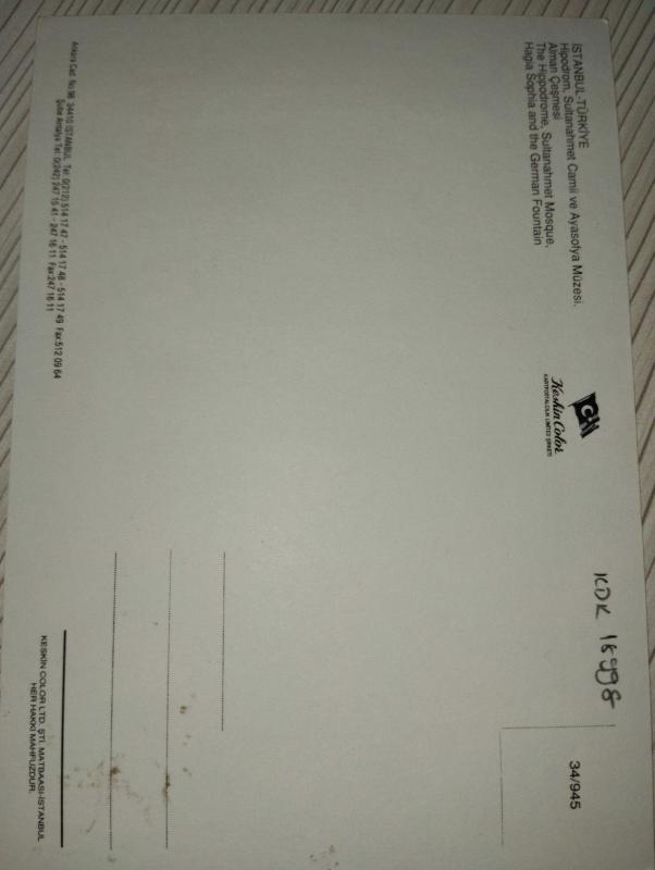 Türkiye İstanbul Hipodrom Sultanahmet Camii ve Ayasofya müzesi Alman çeşmesi Keskin Color yayınları Kartpostal 16 x11.5 ebatında, en son 8 ay önce güncellenmiştir.