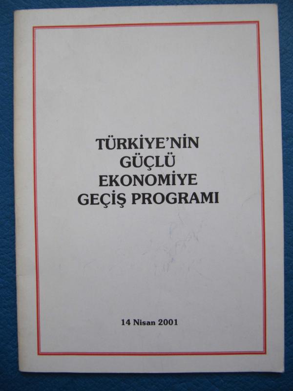 Kitap 2001 yılında Hazine Müsteşarlığı tarafından [Ankara] yayınlanmıştır. 35 sayfadır. Türkiye'nin Güçlü Ekonomiye Geçiş Programı adlı eser Türkçe dilindedir.