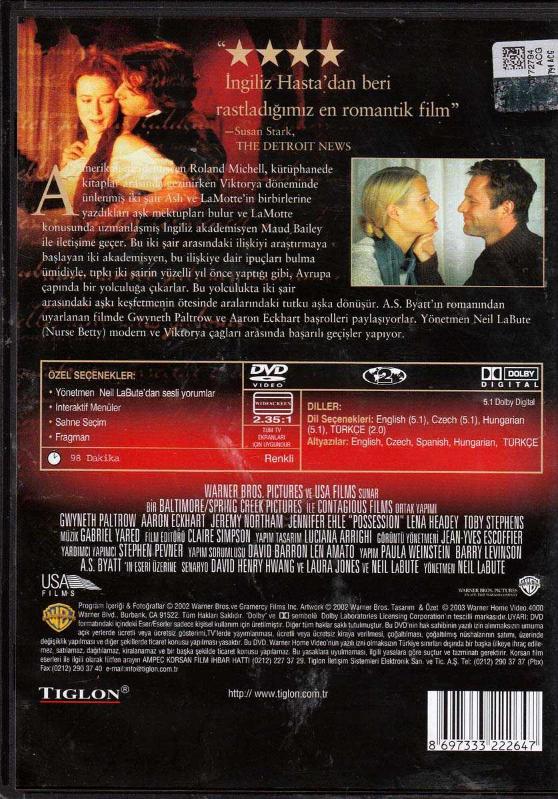 Tutku - Possession ( Gwyneth Paltrow ) ( SIFIR ÜRÜN - AMBALAJINDA ) ( Türkçe Dublaj ) DVD, 11 ay önce satışa sunulmuştur.