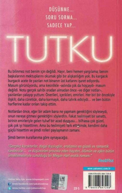 Tutku, Megan Hart tarafından kaleme alınmıştır. Kitap 2010 yılında Sonsuz Kitap tarafından yayınlanmıştır. 400 sayfadır. Tutku adlı eser Türkçe dilindedir.