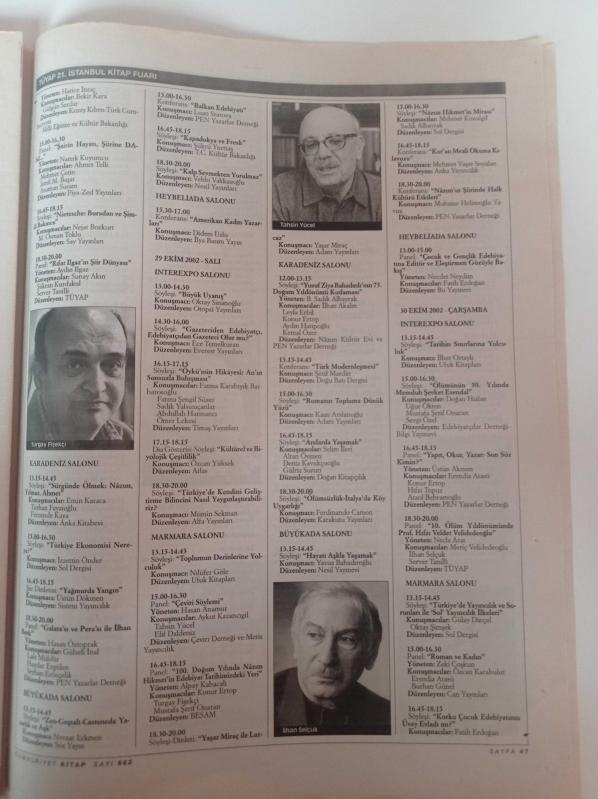 Tüyap 21. İstanbul Kitap Fuarı -Vedat Günyol - Leyla Erbil - Eray Canberk - Yaşar Kemal - Sevgi Özel - Server Tanilli - Ali Nesin - Tahsin Yücel - Turgay Fişekçi - İlhan Selçuk - Cumhuriyet Kitap adlı eser, Kitap > Süreli Yayınlar > Gazeteler kategorisinde İkinci El olarak satıştadır.