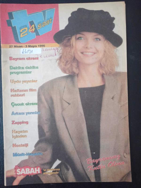 Tv 24 Saat Dergisi- 27 Nisan - 3 Mayıs 1996- Ali Öztürk- Paula- Funda Barın- Kemal Yıldırım- Metin Belgin- Yunus Bülbül- Erdoğan Sevgin- Adnan Atilla- Doloris Van Cartier Yıpranma, sararmalar, kupon kesiği ve yırtılmalar zamana bağlı olarak görülebilir