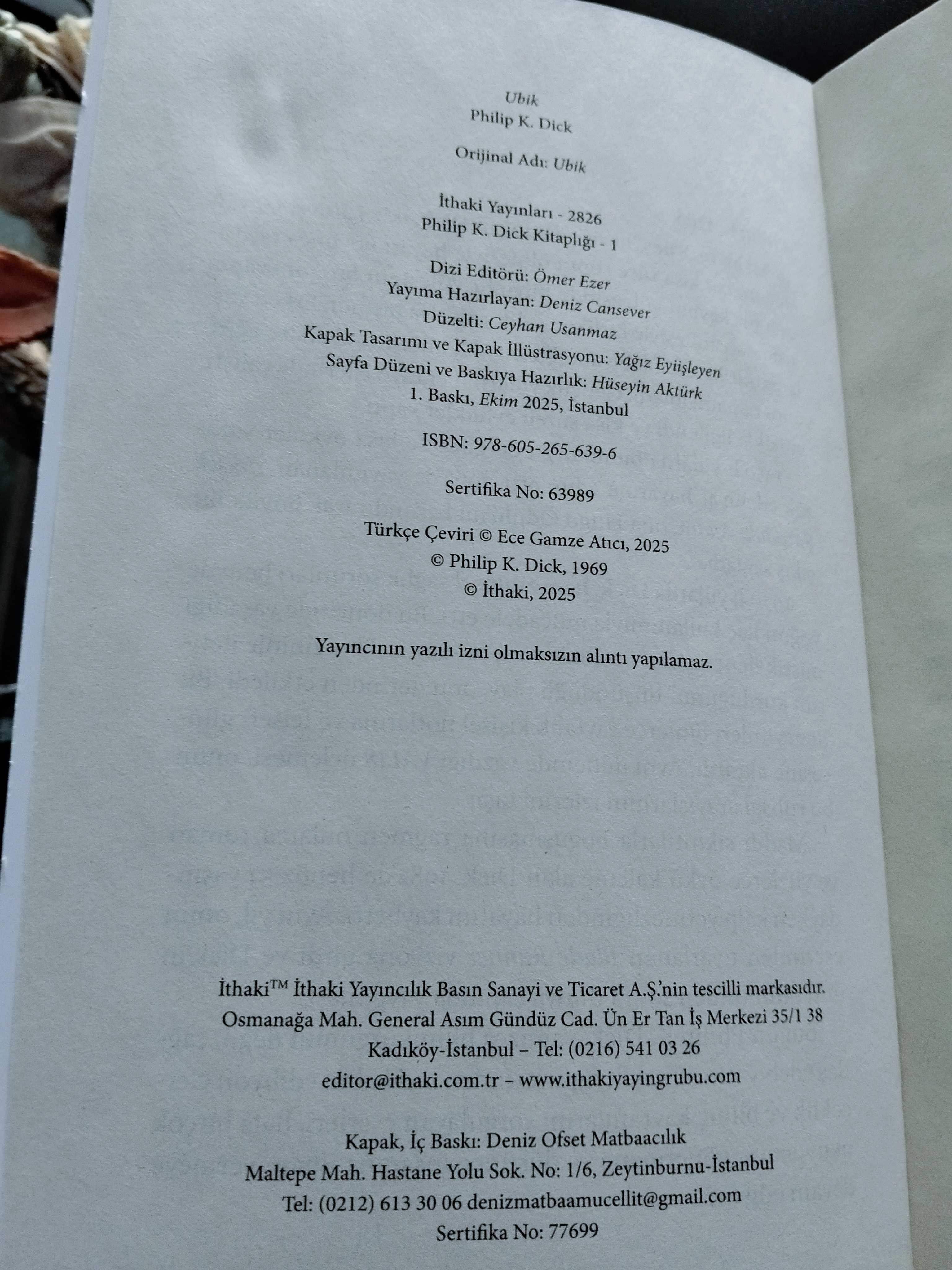 UBİK, Philip K.DICK tarafından kaleme alınmıştır. Kitap 2025 yılında İTHAKİ YAYINEVİ tarafından [İstanbul] 9786052656396 ISBN kodu ile yayınlanmıştır. Bu baskının çevirisi Ece Gamze ATICI tarafından yapılmıştır. 248 sayfadır. UBİK adlı eser Türkçe dilindedir.