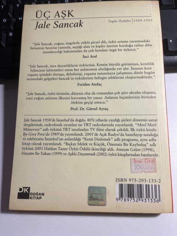 ÜÇ AŞK TOPLU ÖYKÜLER 1989 1993 - JALE SANCAK - DOĞAN KİTAP BİRİNCİ BASKI 2003, JALE SANCAK tarafından kaleme alınmıştır. Kitap 2003 yılında DOĞAN KİTAP tarafından yayınlanmıştır. 240 sayfadır. ÜÇ AŞK TOPLU ÖYKÜLER 1989 1993 - JALE SANCAK - DOĞAN KİTAP BİRİNCİ BASKI 2003 adlı eser Türkçe dilindedir.