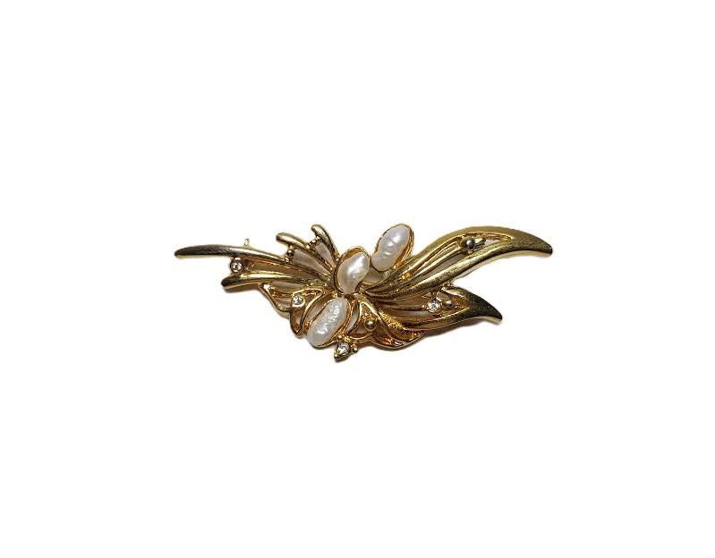 UÇAN KUŞ FORMLU İNCİLİ ALTIN KAPLAMA BROŞ başlıklı antika/koleksiyon objesi Türkiye menşe’lidir. 1940 sonrası dönemine aittir.