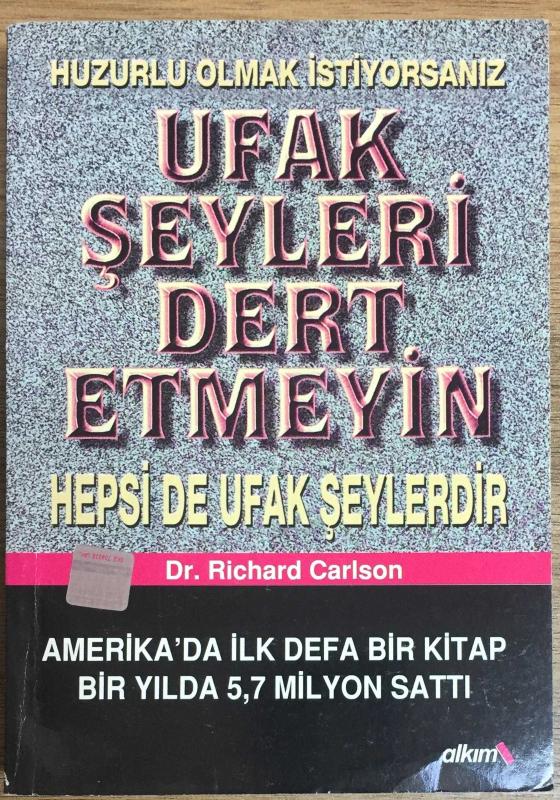 UFAK ŞEYLERİ DERT ETMEYİN, Dr. RICHARD CARLSON tarafından kaleme alınmıştır. Kitap 2006 yılında ALKIM YAYINEVİ tarafından [İstanbul] yayınlanmıştır. Satışta olan kitap, yayınevinin 9. baskısıdır. Bu baskının çevirisi ESAT ÖREN tarafından yapılmıştır. 155 sayfadır. Sayfa bilgisi 155 olarak belirtilmiştir. UFAK ŞEYLERİ DERT ETMEYİN adlı eser Türkçe dilindedir.