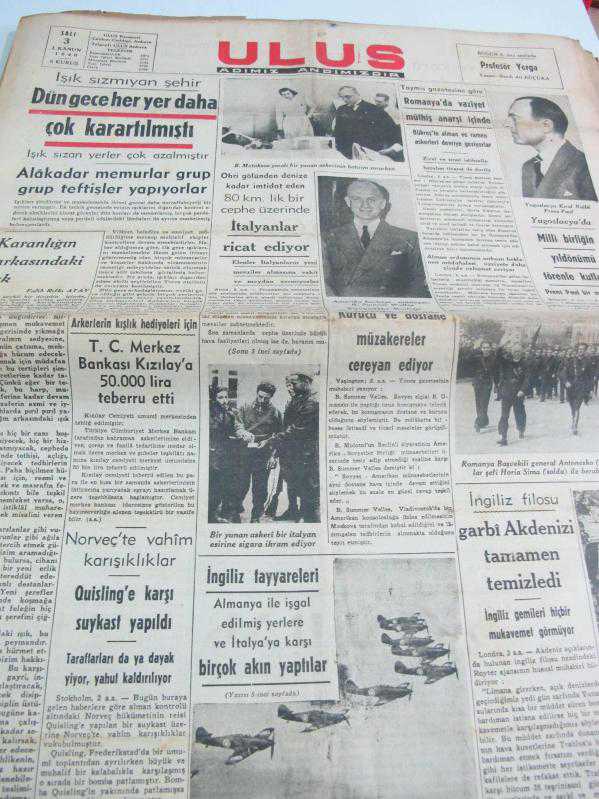 çıktığı yer : ankara gazete adı :ulus yayın süresi: sahibi: sayı :----- yıl :1940 1. 3 KANUN 1940 SALI
