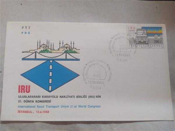 ULUSLARARASI KARAYOLU NAKLİYATI BİRLİĞİ (IRU) NİN 21. DÜNYA KONGRESİ. INTERNATIONAL ROAD TRANSPORT UNION 21st WORLD CONGRESS. İSTANBUL 13.06.1988 başlıklı ürün, Efemera, Müzik, Sinema > Pullar, Zarflar, Kartlar > İlk Gün Zarfı (FDC) > Yerli FDC kategorisi altında İkinci El olarak satılmaktadır.
