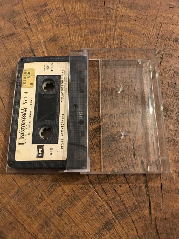 UNFORGETTABLE VOL. 4 - 19 CLASSIC SONGS OF LOVE - KASET 1990 - EMI-KENT A1. Love Is a Many Splendored Thing – Nat King Cole A2. Never, Never, Never – Shirley Bassey A3. Yesterday – Matt Monro A4. La Nuit – Salvatore Adamo A5. Oh! Guitare – Guitare – Enrico Macias A6. Cansaco – Amália Rodrigues A7. Spanish Eyes – Al Martino A8. J’en de Duis Que Je T’aime – Charles Aznavour A9. Tema de Amor – Raphael A10. Mambo Italiano – Dean Martin B1. Killing Me Softly – The Geoff Love Singers B2. Love Is Blue – Al Martino B3. L’Accordéoniste – Édith Piaf B4. C’est en Septembre – Gilbert Bécaud B5. Mon Ami – Mon Frère – Enrico Macias B6. La Cancion del Tamborilero – Raphael B7. The Fool on the Hill – Shirley Bassey B8. Les Filles du Bord de Mer – Salvatore Adamo B9. Cha Cha Cha d’Amour – Dean Martin