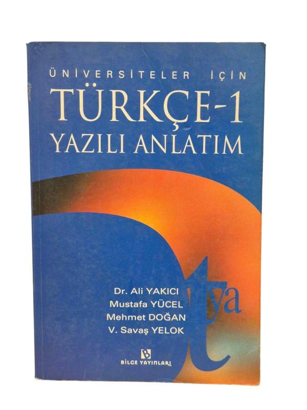 ÜNİVERSİTELER İÇİN TÜRKÇE 1 - YAZILI ANLATIM, ALİ YAKICI-M.YÜCEL-M.DOĞAN-V.SAVAŞ YELOK tarafından kaleme alınmıştır. Eser MEHMET DOĞAN editörlüğünde hazırlanmıştır. Kitap 2004 yılında BİLGE YAYINLARI tarafından yayınlanmıştır. 410 sayfadır. ÜNİVERSİTELER İÇİN TÜRKÇE 1 - YAZILI ANLATIM adlı eser Türkçe dilindedir.