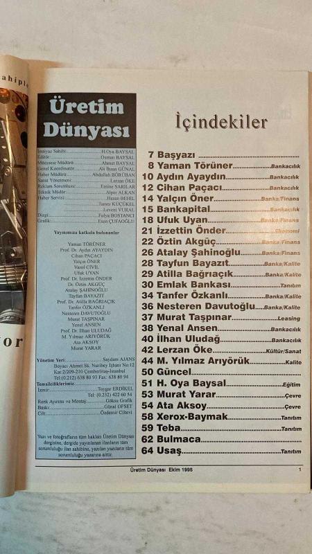 ÜRETİM DÜNYASI, AYLIK ÜRETİCİ FİKİR VE HABER DERGİSİ - EKİM 1995 SAYI: 8 H. OYA BAYSAL - OSMAN BAYSAL - AHMET BAYSAL - ALİ İHSAN GÜNAL - ABDULLAH BÖRÜBAN - LERZAN ÖKE - ALPER ALKAN - EMİNE SARILAR - HASAN BEHİL - TAMER KÜÇÜKEL - LEVENT VURAL - FULYA BOSTANCI - ESEN ÇUFAOĞLU - YAMAN TÖRÜNER - AYDIN AYAYDIN - CİHAN PAÇACI - YALÇIN ÖNER - VAROL CİVİL - UFUK UYAN - İZZETTİN ÖNDER - ÖZTİN AKGÜÇ - ATALAY ŞAHİNOĞLU - TAYFUN BAYAZIT - ATİLLA BAĞRIAÇIK - TANFER ÖZKANLI - NESTEREN DAVUTOĞLU - MURAT TAŞPINAR - YENAL ANSEN - İLHAN ULUDAĞ - M. YILMAZ ARIYÖRÜK - ATA AKSOY - MURAT YARAR YÖNETİLMEYEN TOPLAM KALİTE - BANKACILIK VE FİNANS SEKTÖRÜ - BANKAPİTAL - BANKA/KALİTE UYGULAMALARI - LEASING SEKTÖRÜ - KÜLTÜR/SANAT - EĞİTİM - ÇEVRE - TEKNOLOJİ VE YATIRIM - VAKIF LEASING - XEROX-BAYMAK - TEBA - USAŞ - BULMACA - TAM TAKIM EKSİKSİZ 66 SAYFA adlı eser, Kitap > Süreli Yayınlar > Dergiler > Magazin, Moda kategorisinde İkinci El olarak satıştadır.