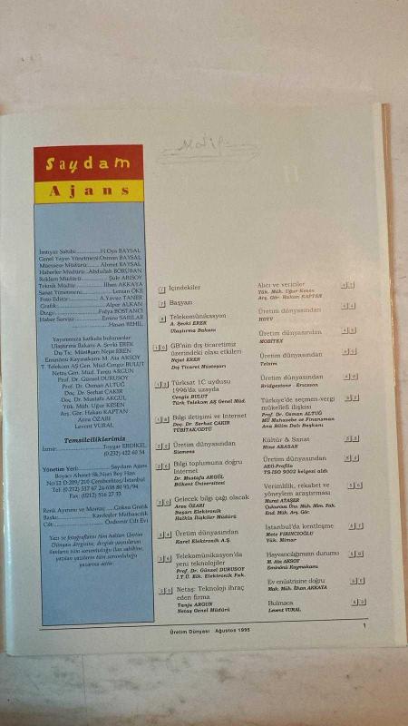 ÜRETİM DÜNYASI, AYLIK ÜRETİCİ FİKİR VE HABER DERGİSİ - EYLÜL 1995 SAYI: 7 OSMAN BAYSAL - H. OYA BAYSAL - AHMET BAYSAL - ABDULLAH BÖRÜBAN - SULE ARISOY - İLHAN AKKAYA - LERZAN ÖKE - A. YAVUZ TANER - ALPER ALKAN - FULYA BOSTANCI - EMİNE SARILAR - HASAN BEHİL - A. ŞEVKİ EREK - NEJAT EREN - M. ATA AKSOY - CENGİZ BULUT - TANJU ARGUN - GÜNSEL DURUSOY - OSMAN ALTUĞ - SERHAT ÇAKIR - MUSTAFA AKGÜL - UĞUR KESEN - HAKAN KAPTAN - ARZU ÖZARI - LEVENT VURAL - MURAT ATAŞER - METE FIRINCIOĞLU - MİNE ARASAN - İLHAN AKKAYA İLETİŞİMDE ÇAĞI YAKALAMAK - GIGASET DECT DİJİTAL TELSİZ TELEFON SİSTEMİ - TÜRKSAT 1C UYDUSU - BİLGİ TOPLUMUNA DOĞRU - TELEKOMÜNİKASYONDA YENİ TEKNOLOJİLER - NETAŞ: TEKNOLOJİ İHRAÇ EDEN FİRMA - ALICI VE VERİCİLER - HDTV - MOBITEX - TELSIM - BRIDGESTONE ERICSSON - SEÇMEN-VERGİ MÜKELLEFİ İLİŞKİSİ - TS-ISO 9002 BELGESİ - VERİMLİLİK, REKABET VE YÖNEYLEM ARAŞTIRMASI - İSTANBUL’DA KENTLEŞME - HAYVANCILIĞIMIZIN DURUMU - EV ENDÜSTRİSİNE DOĞRU - BİR DAKİKA - BULMAC - TAM TAKIM EKSİKSİZ 66 SAYFA adlı eser, Kitap > Süreli Yayınlar > Dergiler > Magazin, Moda kategorisinde İkinci El olarak satıştadır.