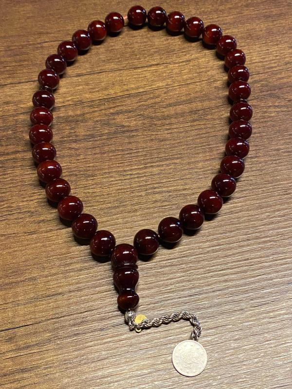 Üst düzey Osmanlı benzetmesi eski El cezire döküm minimum 20 yaş civarında. . Çok özel Osmanlı benzetmesi 15,5 milim habbe çapı. Püskül zinciri gümüş ve gümüş ikinci Abdülhamit 2 kuruş.
