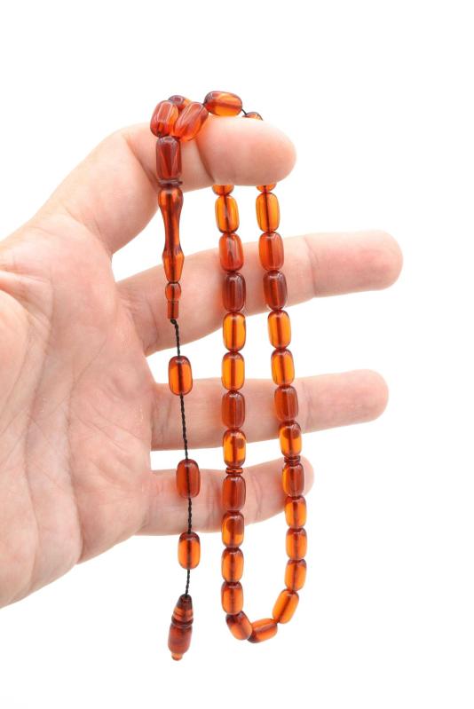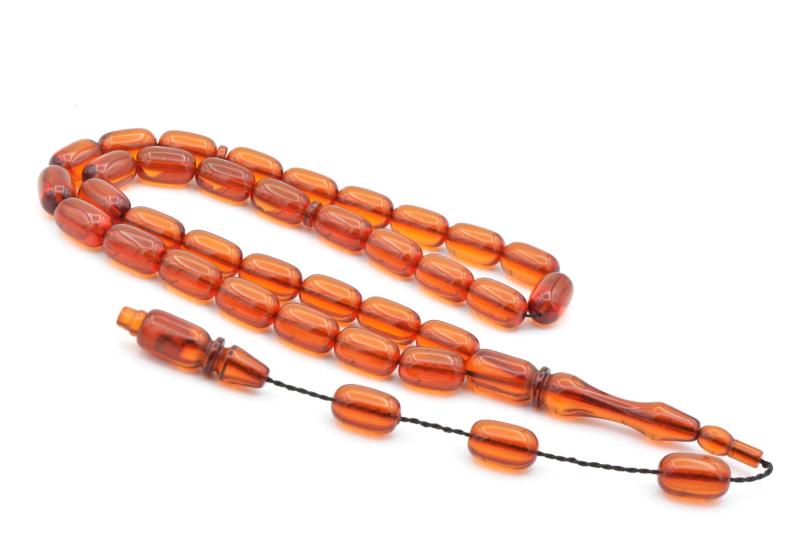 Renk: Sarı Kategori: Tesbih ORJİNAL SIKMA KEHRİBAR TESBİH ÇİFT DELİKLİ USTA İŞİ İMAME USTA İŞİ SİSTEMLİ TANE EBADI: 7*11 mm İMAME BOY: 3.9 cm TOPLAM BOY: 35 cm