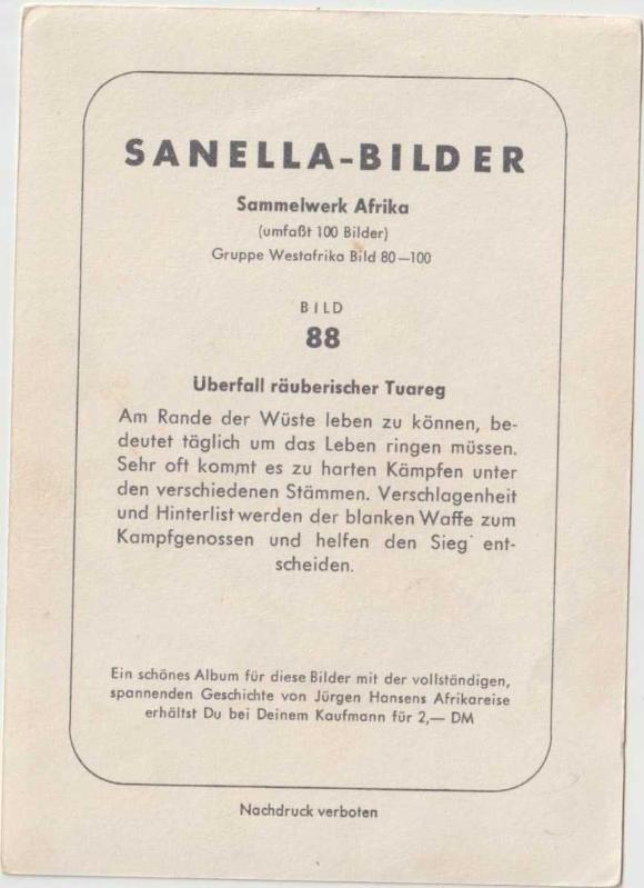 Überfall rauberischer Tuareg / Sanella Bilder Sammelwerk Afrika Bild 88, en son 1 yıl önce güncellenmiştir.