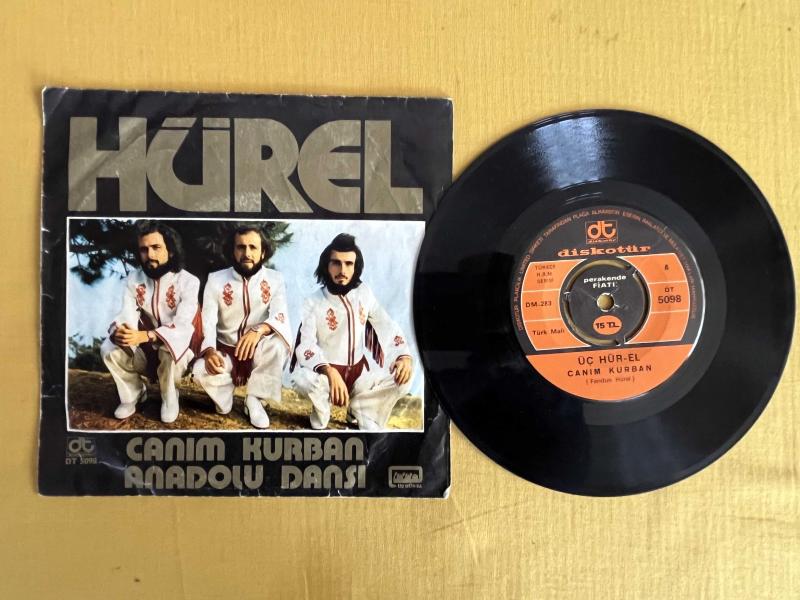 Üç hürel 45 lik plak ‘’Canım kurban - Anadolu dansı’’ orijinal dönem baskı Kapak: yırtık eksik vs. Yok Plak çiziksiz atlama takılma yok
