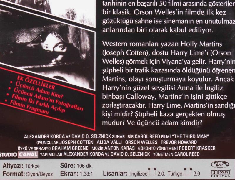 Üçüncü Adam başlıklı ürün, Efemera, Müzik, Sinema > Sinema, Film, Dizi > DVD > Yabancı DVD kategorisi altında İkinci El olarak satılmaktadır.
