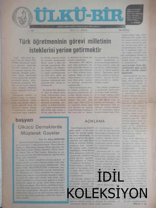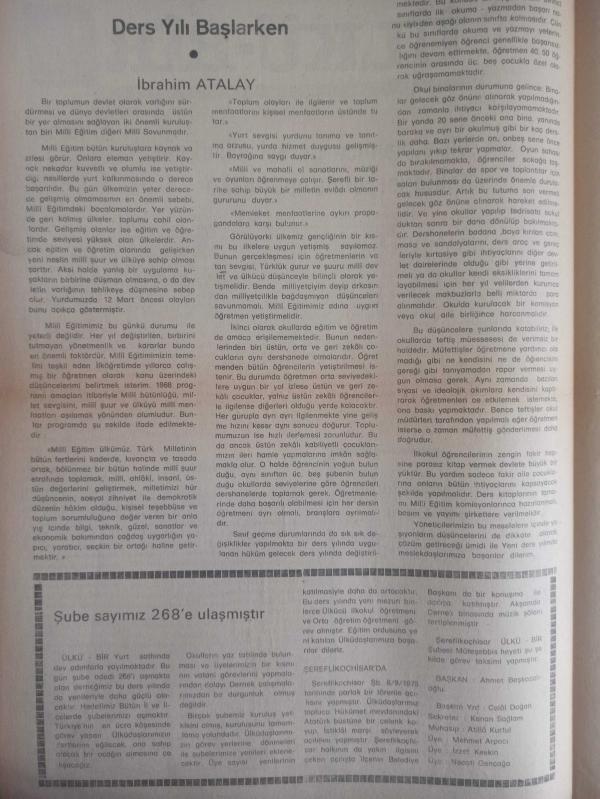 Kitap 1978 yılında [İstanbul] yayınlanmıştır. 4 sayfadır. Ülkü Bir Ülkücü Öğretmenler Derneği Aylık Yayın Organı Dergisi - Eylül - Sayı:3 - Türk Öğretmeninin Görevi Milletinin İsteklerini Yerine Getirmektir - Ülkücü Derneklerde Müşterek Gayeler - Ders Yılı Başlarken - İbrahim Atalay - Şube Sayımız 268'e Ulaşmıştır - Milli Eğitim Bakanlığında Olumlu Gelişmeler - Meyak Çıkmazı - Mektupla Öğretim Yeniden Düzenlenecek - Sana Benim Gözümle Bamayanın - Yalçın Gökhan - Türk Öğretmeninin Görevi - Ülkücü Derneklerde Müşterek fotoğraf ve haberi - Tam Takım Dergi adlı eser Türkçe dilindedir.