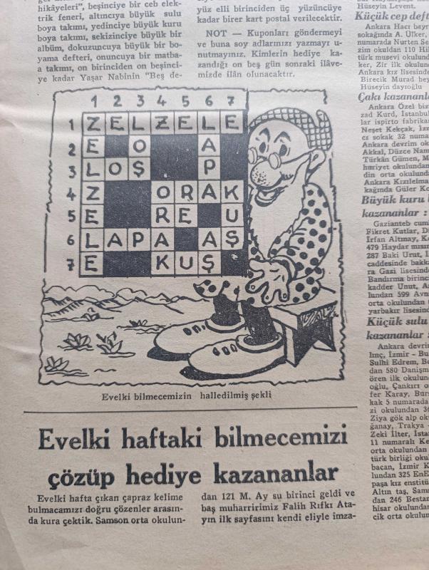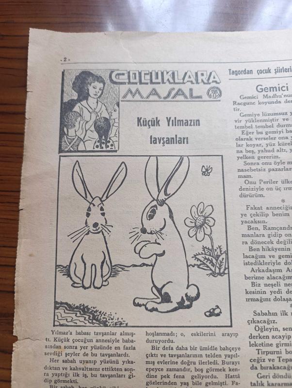 Ulus Çocukları Gazetesi - Turkish Newspaper - 8 Mayıs 1938 - sevgili çocuklara - büyük şefimiz Atatürk 19 Mayıs'ın 19. günü Samsun ayak basmıştı - 19 Mayıs Gençlik ve Spor bayramından fotoğraflar - 19 Mayıs şiiri - çocuklara masal küçük Yılmaz'ın tavşanları - bu oyunu biliyor muydunuz hayvan kuş balık - Tagordan çocuk şiirleri Gemici - rozet biriktiren küçük oyunculara - yeni bilmecemiz - bilmece ve boyamacalarımızdan hediye kazanan okuyucularımızdan soldan sağa sıra ile Ankara birinci ortaokulundan 81 Rıfkı Özbay Ankara Necati okulundan 127 Özer Özkök Antalya kale kapısından Harputlu yanında Mehmet Yalçın Elazığ ortaokulundan 514 Hamit Tezcan Diyarbakır Süleyman Nazif okulundan 61 Tevfik inan Zonguldak Yeniyol okulundan 166 Şensoy Ankara okuyucularımızdan P.Tamyecel İstanbul Üsküdar birinci ortaokulundan 64 Erdoğan Mengü Fotoğrafı - Miki Mouse korsanlar arasında karikatür - matbaa takımı kazananlar Ankara Atatürk okulu'ndan Sevim Timagur - büyük cep defteri kazanan İhsan Ünal adlı eser, Kitap > Süreli Yayınlar > Gazeteler > Türkiye > Genel > Günlük kategorisinde İkinci El olarak satıştadır.