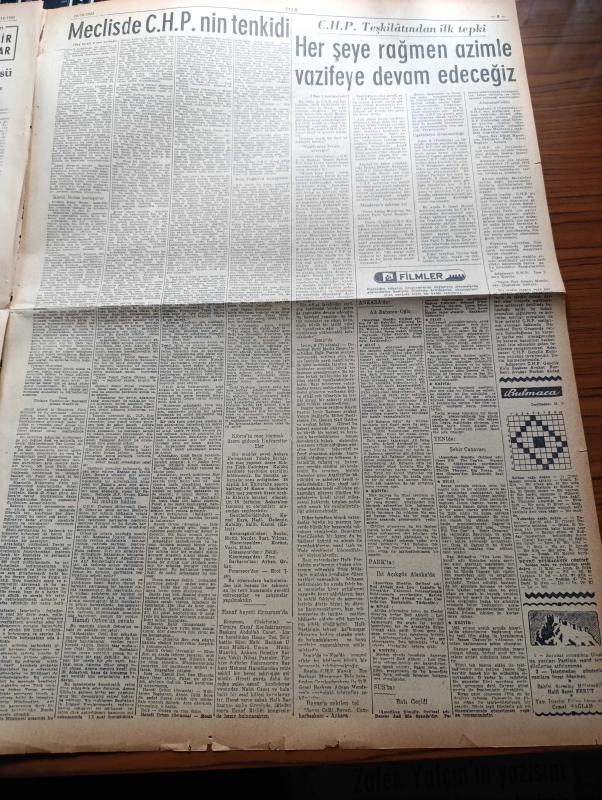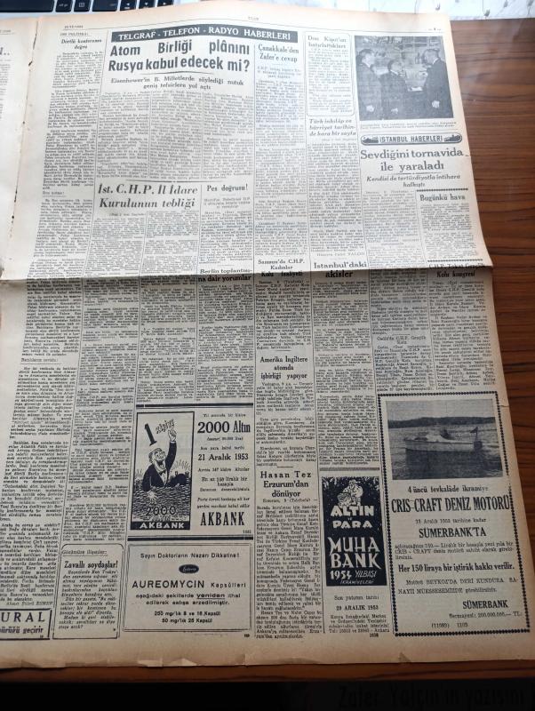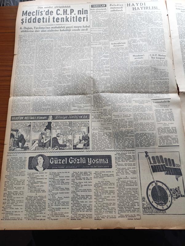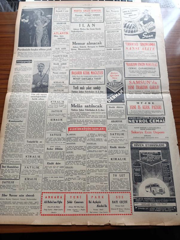 Ulus Gazetesi - 10 Aralık 1953 - Hüseyin Cahit Yalçın - Mecliste CHP'nin Şiddetli Tenkidleri - Avni Doğan - Sırrı Atalay - Hamdi Orhon - Kamil Boran Tehdit Edildi - CHP Teşkilatı Her Şeye Rağmen Azimle Vazifeye Devam Edeceğiz - Birleşik Amerika Yabancı Faaliyetler İdarecisi Stassen Ankara'ya Geliyor - Et Kombinasının Temeli Atıldı - Başbakan Adnan Menderes'i Protesto - Güzel Gözlü Yosma Yazan Pierre Decourcelle Yazı Dizisi - Ulus'un Resimli Romanı Silviya İskoçya'da - Atom Birliği Planını Rusya Kabul Edecek Mi - Merzifon Belediyesi Demokrat Partili Olmayana Kömür Vesikası Vermiyor - Muhabank - Don Kişot'un Hatırlattıkları Yazan Çetin Altan - Ligler Tehir Edilmiyor - İkinci Küme Voleybol Birincilikleri - Baykara'nın Serüvenleri Gecenin Kanatları Çizgi Roman - Akdeniz'de Bir Komando Hareketi Yazan A.N.A Yazı - Kamspor Kupası Basketbol Maçları - Havagücünden 2 Futbolcu Adalet İle Anlaştı - Ali Babanın Oğlu Filmi - Yüz Elli Metre Uzunluğundaki Balık Oltası - Türkocağı Sinemasında - Derman adlı eser, Kitap > Süreli Yayınlar > Gazeteler > Türkiye > Genel > Günlük kategorisinde İkinci El olarak satıştadır.