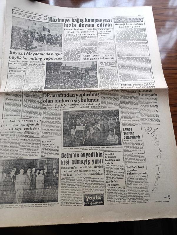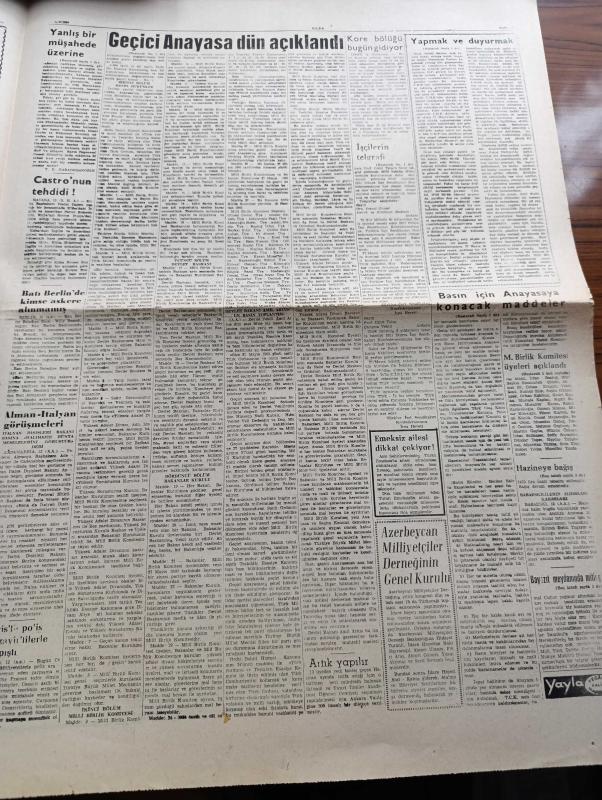 Ulus Gazetesi - 13 Haziran 1960 - Yanlış Bir Müşahede Üzerine Yazan Yakup Kadri Karaosmanoğlu Köşe Yazısı - Geçici Anayasa Dün Açıklandı - Milli Birlik Komitesi Üyeleri Açıklandı - Eski Anayasadaki Müsadere Memnuniyeti Maddesi Kalktı - Adalet Bakanı Abdullah Pulat Gözübüyük'ün Demeci - Yapmak Ve Duyurmak Yazan Bülent Ecevit Köşe Yazısı - Olur Mu Böyle Olur Mu Kardeş Kardeşi Vurur Mu Yazan Altan Öymen Yazı Dizisi - Yeni Ama Kanun Yazan Namık Zeki Aral - Billur Köşk Yazan Elizabeth Caddell Yazı Dizisi - Beyazıt Meydanında Bugün Büyük Bir Miting Yapılacak - Emil Galip Sandalcı Köşe Yazısı - Demokrat Parti Tarafından Yaptırılmış Olan Binlerce Şiş Bulundu - Ankara Üniversitesi Talebe Birliği Türkiye Milli Talebe Federasyonu İkinci Başkanlığına El Koydu - Amerika Semada 226 Kilo Dinamit Patlatacak - İsrail Suriye'den Şikayetçi - Fenerbahçe Şampiyon Beşiktaş'ı Yendi - Tek Golü Şeref Attı - 1959 1960 Şampiyonu Beşiktaş Kupayı Alıyor - Ankara'da İlk Gece Maçı Gençlerbirliği İle America adlı eser, Kitap > Süreli Yayınlar > Gazeteler > Türkiye > Genel > Günlük kategorisinde İkinci El olarak satıştadır.