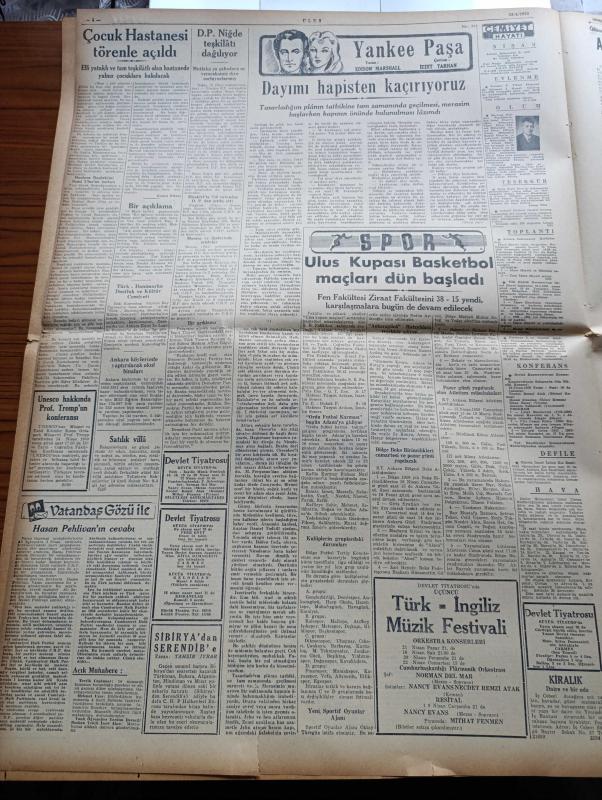Ulus Gazetesi - 13 Nisan 1950 - Mareşal Fevzi Çakmak'ın Cenazesi Büyük Bir Merasimle Kaldırıldı - Mareşal Fevzi Çakmak'ın Tabutu Tekbirlerle Nişantaşı'ndan Eyüp'e Eller Üzerinde Taşındı - Peyami Safa Köşe Yazısı - Hüseyin Cahit Yalçın Köşe Yazısı - Başbakan Şemseddin Günaltay Zonguldak Limanı Hakkında İzahat Alıyor - Çocuk Hastanesi Törenle Açıldı - Profesör Perihan Çambel'le Bir Konuşma - Ticani Tarikatçılığı Yapmaktan Sanık Kemal Pilavoğlu - Antakya'da Su Baskını - Cumhurbaşkanı Filarmoni Orkestrası Misafiri Norman Del Mar İle Bir Mülakat - Uçan Gölgeler Yazan Server Bedi Yazı Dizisi - İnönü Ansiklopedisi Bürosu Nasıl Çalışır Yazan Agâh Sırrı Levend - Paris Fuarına İştirak Ediyoruz - Doçent Danyal Bediz Bir Konferans Verdi - Nazım Hikmet Üsküdar Cezaevine Nakledildi - Taksim'deki Büyük Opera Binası İnşaatı İçin 307 Bin Lira Ayrıldı - Ölümünün 13. Yıldönümünde Abdülhak Hamit Tarhan Yazan R. Necdet Evrimer - Yankee Paşa Yazan Edison Marshall Yazı Dizisi - Ulus Kupası Basketbol Maçları, Kasım Gülek tarafından kaleme alınmıştır. Ulus Gazetesi - 13 Nisan 1950 - Mareşal Fevzi Çakmak'ın Cenazesi Büyük Bir Merasimle Kaldırıldı - Mareşal Fevzi Çakmak'ın Tabutu Tekbirlerle Nişantaşı'ndan Eyüp'e Eller Üzerinde Taşındı - Peyami Safa Köşe Yazısı - Hüseyin Cahit Yalçın Köşe Yazısı - Başbakan Şemseddin Günaltay Zonguldak Limanı Hakkında İzahat Alıyor - Çocuk Hastanesi Törenle Açıldı - Profesör Perihan Çambel'le Bir Konuşma - Ticani Tarikatçılığı Yapmaktan Sanık Kemal Pilavoğlu - Antakya'da Su Baskını - Cumhurbaşkanı Filarmoni Orkestrası Misafiri Norman Del Mar İle Bir Mülakat - Uçan Gölgeler Yazan Server Bedi Yazı Dizisi - İnönü Ansiklopedisi Bürosu Nasıl Çalışır Yazan Agâh Sırrı Levend - Paris Fuarına İştirak Ediyoruz - Doçent Danyal Bediz Bir Konferans Verdi - Nazım Hikmet Üsküdar Cezaevine Nakledildi - Taksim'deki Büyük Opera Binası İnşaatı İçin 307 Bin Lira Ayrıldı - Ölümünün 13. Yıldönümünde Abdülhak Hamit Tarhan Yazan R. Necdet Evrimer - Yankee Paşa Yazan Edison Marshall Yazı Dizisi - Ulus Kupası Basketbol Maçları adlı eser Türkçe dilindedir.