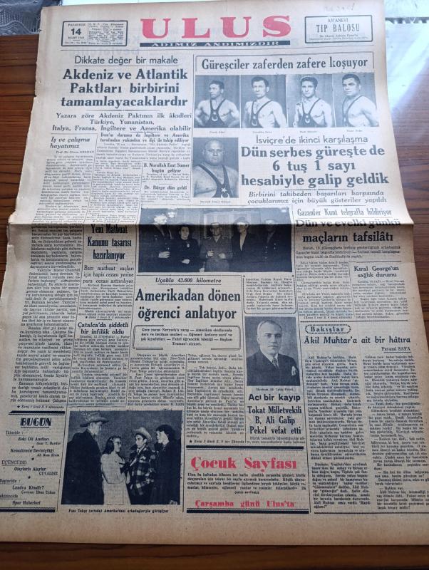 Ulus Gazetesi - 14 Mart 1949 - Peyami Safa Köşe Yazısı - Profesör Doktor Yavuz Abadan Köşe Yazısı - Milli Takım Fenerbahçe'yi Yendi - Dikkate Değer Bir Makale Akdeniz ve Atlantik Paktları Birbirini Tamamlayacaklardır - Yeni Matbuat Kanunu Tasarı Hazırlanıyor - Güreşçiler Zaferden Zafere Koşuyor - Nasuh Akar - Halit Balamir - Yaşar Doğu - Mersinli Ahmet Kiremitçi - Kaçırılan Kızlar Yazan Gerard Fairlie Yazı Dizisi - Kemalizm Devletçiliği Yazan Ali Erem - Mizah Antolojisi - Tokat Milletvekili Ali Galip Pekel Vefat Etti - İstanbul'dan 80 Musevi Filistin'e Gitti - 1948 Yılının Muvaffak Film ve Yıldızları - Asrın En Müthiş Canisi Landru Kimdir - Filistin İçin Çarpıştığımız Günler Yazan M. Şevki Yazman Yazı Dizisi - Berlin'de Ölüm Çeviren Orhan Veli Kanık Yazı Dizisi - Hürriyeti Seçtim Davası - Bir Oda Müziği Konseri - Pakize Albayrak - Doktor Lütfi Tanberk - Azeri Operet Heyeti Halkevinde - Türk Aslanın Sözü Ulus Sinemasında - Gençlerbirliği 26 Yaşında - Rasim Adasal - Demirspor, Kasım Gülek tarafından kaleme alınmıştır. Ulus Gazetesi - 14 Mart 1949 - Peyami Safa Köşe Yazısı - Profesör Doktor Yavuz Abadan Köşe Yazısı - Milli Takım Fenerbahçe'yi Yendi - Dikkate Değer Bir Makale Akdeniz ve Atlantik Paktları Birbirini Tamamlayacaklardır - Yeni Matbuat Kanunu Tasarı Hazırlanıyor - Güreşçiler Zaferden Zafere Koşuyor - Nasuh Akar - Halit Balamir - Yaşar Doğu - Mersinli Ahmet Kiremitçi - Kaçırılan Kızlar Yazan Gerard Fairlie Yazı Dizisi - Kemalizm Devletçiliği Yazan Ali Erem - Mizah Antolojisi - Tokat Milletvekili Ali Galip Pekel Vefat Etti - İstanbul'dan 80 Musevi Filistin'e Gitti - 1948 Yılının Muvaffak Film ve Yıldızları - Asrın En Müthiş Canisi Landru Kimdir - Filistin İçin Çarpıştığımız Günler Yazan M. Şevki Yazman Yazı Dizisi - Berlin'de Ölüm Çeviren Orhan Veli Kanık Yazı Dizisi - Hürriyeti Seçtim Davası - Bir Oda Müziği Konseri - Pakize Albayrak - Doktor Lütfi Tanberk - Azeri Operet Heyeti Halkevinde - Türk Aslanın Sözü Ulus Sinemasında - Gençlerbirliği 26 Yaşında - Rasim Adasal - Demirspor adlı eser Türkçe dilindedir.