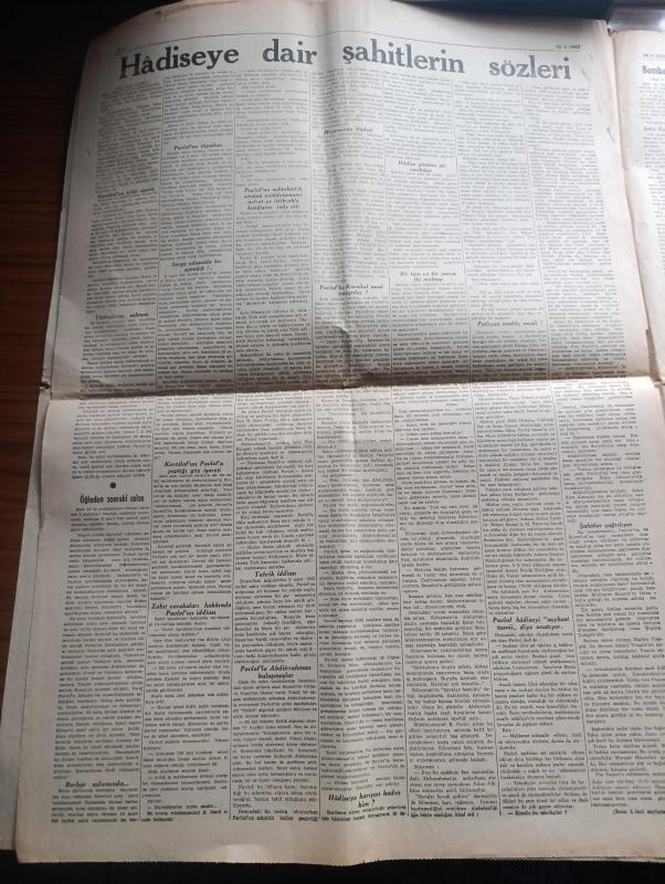 Ulus Gazetesi - 16 Nisan 1942 - Fransa hakkındaki yeni haberler yazan Falih Rıfkı Atay Başmakale - Büyük Millet meclisi'nde Türk inkılap tarihi Enstitüsü hakkındaki kanun projesi kabul edildi - CHP Genel sekreteri Fikri Tuzer Ankara'da fotoğraf - yeniden tedavi ile çıkarılacak olan 50 ve bir liralıklar fotoğraf - Merkez Bankası umum müdürü Kemal Zaim Sunel fotoğraf - bomba hadisesi dün muhakemede vesikalar okundu şahitler dinlendi - zeytinyağı ve sabun fiyatları - haftalar günlük ekmek kuponu karşılığında gluten ekmeği alabilecekler - Ankara Halkevinde Etnoloji ve folklor konferansları - radyo programı - Von Papen'e yapılmak istenen suikast - General Marshall Almanya'ya karşı büyük bir taarruz yapılmasını istiyor - Roosevelt'e göre müttefik devletler iki veya üç yılda mihveri yok edecek - filipinler'de Cebu hala dayanıyor - Birmanyada Japonlar ilerliyor - Zati Sungur yeni sinemada - Şark kundura baharı getirdi - Ankara Levazım amirliğine gelen ilanlar - kara yıldızlar Ulus sinemasında adlı eser, Kitap > Süreli Yayınlar > Gazeteler > Türkiye > Genel > Günlük kategorisinde İkinci El olarak satıştadır.