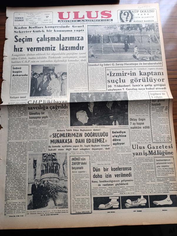 Ulus Gazetesi - 17 Mart 1957 - Kadın Kolları Kongresinde Kasım Gülek Seçim Çalışmalarına Hız Vermemiz Lazımdır Dedi - Hüseyin Cahit Yalçın - İstanbul Lig Lideri Galatasaray Hacettepe İle Berabere Kaldı - İzmir Vapurunun Kaptanı T. Candaş Suçlu Görülüyor - CHP'li İki Bayan Übeyde Elli İle Süheyla Poyrazoğlu Savcılığa Çağrıldı - Ankara Tabip Odası Başkanı Doktor Suphi Baykam Seçimlerimizin Doğruluğu Münakaşa Dahi Edilemez - İsmet İnönü'nün Zafer Gazetesi'nde Beyanatı - İngilterede 3 Milyon İşçi Greve Başladı - Devlet Kuşu Yazan Orhan Yazı Dizisi - Hicret Canbazoğlu - Gaz Ve Benzin Satışları Serbest Bırakılıyor - İsrail Gazze'ye Tekrar İşgal Edebilecek - Yakup Kadri Karaosmanoğlu - Silviya Kobay'ın Hikayesi Çizgi Roman - Baykara Hz. Süleymanın Taşı Çizgi Roman - Koç Otobüsleri - Ankara Makarnası - Ankaragücü Tek Golle Gençlerbirliğini Yendi - Çiftlik Söğütözü Arsaları - Sonsuz Aşk Renkli Sinemada - Eğin Gecesi Büyük Sinemada, Kasım Gülek tarafından kaleme alınmıştır. Ulus Gazetesi - 17 Mart 1957 - Kadın Kolları Kongresinde Kasım Gülek Seçim Çalışmalarına Hız Vermemiz Lazımdır Dedi - Hüseyin Cahit Yalçın - İstanbul Lig Lideri Galatasaray Hacettepe İle Berabere Kaldı - İzmir Vapurunun Kaptanı T. Candaş Suçlu Görülüyor - CHP'li İki Bayan Übeyde Elli İle Süheyla Poyrazoğlu Savcılığa Çağrıldı - Ankara Tabip Odası Başkanı Doktor Suphi Baykam Seçimlerimizin Doğruluğu Münakaşa Dahi Edilemez - İsmet İnönü'nün Zafer Gazetesi'nde Beyanatı - İngilterede 3 Milyon İşçi Greve Başladı - Devlet Kuşu Yazan Orhan Yazı Dizisi - Hicret Canbazoğlu - Gaz Ve Benzin Satışları Serbest Bırakılıyor - İsrail Gazze'ye Tekrar İşgal Edebilecek - Yakup Kadri Karaosmanoğlu - Silviya Kobay'ın Hikayesi Çizgi Roman - Baykara Hz. Süleymanın Taşı Çizgi Roman - Koç Otobüsleri - Ankara Makarnası - Ankaragücü Tek Golle Gençlerbirliğini Yendi - Çiftlik Söğütözü Arsaları - Sonsuz Aşk Renkli Sinemada - Eğin Gecesi Büyük Sinemada adlı eser Türkçe dilindedir.