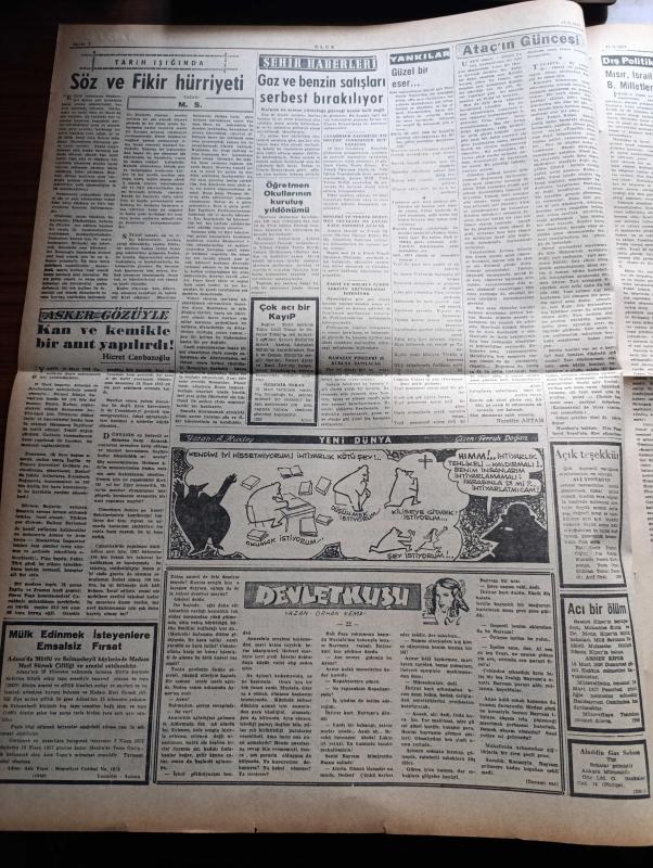 Ulus Gazetesi - 17 Mart 1957 - Kadın Kolları Kongresinde Kasım Gülek Seçim Çalışmalarına Hız Vermemiz Lazımdır Dedi - Hüseyin Cahit Yalçın - İstanbul Lig Lideri Galatasaray Hacettepe İle Berabere Kaldı - İzmir Vapurunun Kaptanı T. Candaş Suçlu Görülüyor - CHP'li İki Bayan Übeyde Elli İle Süheyla Poyrazoğlu Savcılığa Çağrıldı - Ankara Tabip Odası Başkanı Doktor Suphi Baykam Seçimlerimizin Doğruluğu Münakaşa Dahi Edilemez - İsmet İnönü'nün Zafer Gazetesi'nde Beyanatı - İngilterede 3 Milyon İşçi Greve Başladı - Devlet Kuşu Yazan Orhan Yazı Dizisi - Hicret Canbazoğlu - Gaz Ve Benzin Satışları Serbest Bırakılıyor - İsrail Gazze'ye Tekrar İşgal Edebilecek - Yakup Kadri Karaosmanoğlu - Silviya Kobay'ın Hikayesi Çizgi Roman - Baykara Hz. Süleymanın Taşı Çizgi Roman - Koç Otobüsleri - Ankara Makarnası - Ankaragücü Tek Golle Gençlerbirliğini Yendi - Çiftlik Söğütözü Arsaları - Sonsuz Aşk Renkli Sinemada - Eğin Gecesi Büyük Sinemada adlı eser, Kitap > Süreli Yayınlar > Gazeteler > Türkiye > Genel > Günlük kategorisinde İkinci El olarak satıştadır.