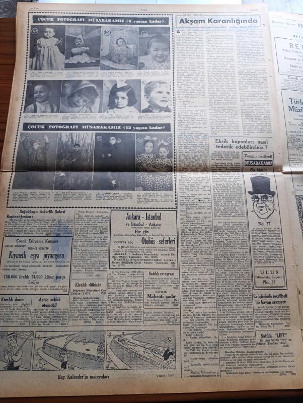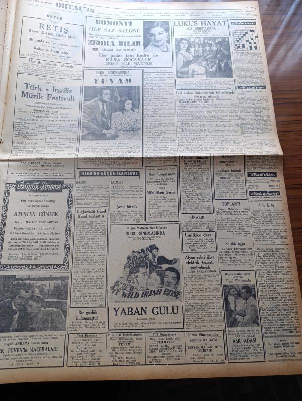 Ulus Gazetesi - 17 Nisan 1950 - Hüseyin Cahit Yalçın - İsmet İnönü'nün Kabulleri - Ankara'da Dün Üç Cumhuriyet Halk Partisi Ocağı Daha İşe Başladı - Çukurova'da 1500 Traktör Çalışıyor - Milli Eğitim Kupası - Türk İngiliz Müzik Festivali - Maliye Bakanı İsmail Rüştü Aksal Evlendi - Kayseri'de İşçi Evlerinin Temeli Atıldı - Zonguldak'ta Demokrat Parti'nin Siyaset Oyunları - Uçan Gölgeler Yazan Server Bedi Yazı Dizisi - Fen Adamı Burhan Arif Ongun'un Kıymetli Bir İcadı - Uluğ İğdemir - İrtica Aklını Başına Alsın - Turizm Davası Ön Plana Alındı - Darüşşafaka'nın 77. Yılı - Tiyatro Atina'da 2 Hafta Yazan Lütfi Ay - Haftanın Filmleri - Yankee Paşa Yazan Edison Marshall Yazı Dizisi - Lüküs Hayat Sus Sinemasında - Müzeyyen Senar Işıl - Yaban Gülü Filmi Ulus Sinemasında - Galatasaray Vefa Fenerbahçe Beşiktaş Berabere Kaldı - İzmir At Yarışları - Maçlar Radyo İle Yayınlanmayacak - Bisiklet Yarışları adlı eser, Kitap > Süreli Yayınlar > Gazeteler > Türkiye > Genel > Günlük kategorisinde İkinci El olarak satıştadır.