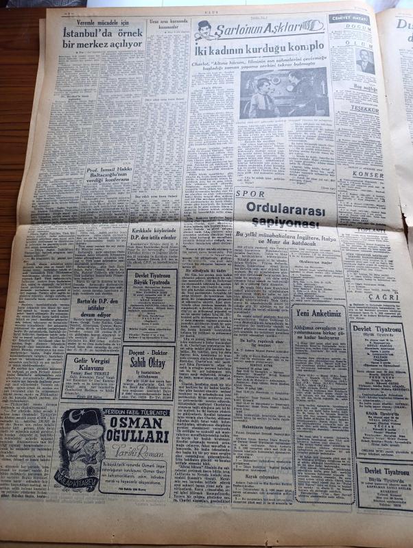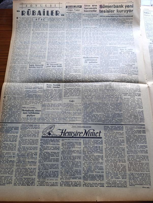 Ulus Gazetesi - 17 Şubat 1950 - Profesör Doktor Yavuz Abadan Köşe Yazısı - Büyük Millet Meclisi Yeni Seçim Kanununu Kabul Etti - Cumhurbaşkanı İsmet İnönü Savaştepe Heyetini Kabulleri Sırasında - Veremle Mücadele İçin İstanbul'da Örnek Bir Merkez Açılıyor - Seçim Kanunu Üzerine Başbakan Şemseddin Günaltay'ın Demeci - İçişleri Bakanlığı Bütçesi Çıktı - Dış Bakanımız Necmettin Sadak Dünya Durumunu İzah Etti - Ankara Boks Karması Takımı İtalyan Boksörleri İle Karşılaştı - Hemşire Nimet Yazan Azmiye Hami Güven Yazı Dizisi - Halkevlerinin Yıldönümü 19 Şubat'ta - Sümerbank Yeni Tesisler Kuruyor - Kore'deki Çetelere Yardım Ediliyor - Sanayi Bankası Dış Kredi İstiyor - Ayazağa'ya Elektrik Veriliyor - Elazığ'da Kadınlar Birliği Kuruldu - Charlie Chaplin'in ( Şarlo) Aşkları Yazı Dizisi - Ordulararası Şampiyonası - Hakemlerin Toplantısı - Türkiye'nin Yegâne Ses Sanatkarı Müzeyyen Senar Işıl Üstad Kemani Nobar Tekyay İle Bomonti Aile Saz Salonunda - Galatasaray Balosu - Bulmaca - Radyo adlı eser, Kitap > Süreli Yayınlar > Gazeteler > Türkiye > Genel > Günlük kategorisinde İkinci El olarak satıştadır.