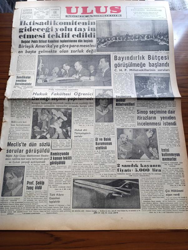 Ulus Gazetesi - 18 Ocak 1958 - İktisadi Komitenin Gideceği Yolu Tayin Etmesi Teklif Edildi - Sendikalar Yeniden Kurulmalıdır - Bayındırlık Bütçesi Görüşülmeye Başlandı - Milletvekilleri Kan Bağışlayacak - Ünlü Piyanist Samson François Geliyor - Sinop Seçimine Dair İtirazların Yeniden İncelenmesi İstendi - Et Ve Balık Kurumunun Statüsü - Türk Kıbrıs Gazetesi Yapıldı - Profesör Şekip Tunç Fındık Öldü - Salahattin Hakkı Esatoğlu - Neyzen Tevfik - Vatan Yolunda Milli Mücadele Hatıraları Yazan Yakup Kadri Karaosmanoğlu Yazı Dizisi - Küçük Venedik'te Buhran - Celal İleri'nin Cenazesi Kaldırıldı - Çin Hükümeti Nişan Verdi - Bir Tekel Sakini Bay Sabri Röportaj Örsan Öymen - Başkentte 24 Saat - 1958 De Dolar Devalüasyonu Mu Yapılacak - Silviya Latin Aşığı - Baykara Attila'nın Eli Çizgi Roman - Adenauer Antikomünistliği İçin Taltif Edildi - İran Güreş Takımı Geliyor - Dörtlü Turnuvaya Bugün Başlanıyor - Mısır Turunda Aytekin İpek Dördüncü Oldu - Hakem Veli Necdet Arığ Açıklıyor adlı eser, Kitap > Süreli Yayınlar > Gazeteler > Türkiye > Genel > Günlük kategorisinde İkinci El olarak satıştadır.