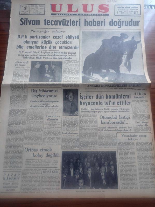 Ulus Gazetesi - 20 Eylül 1953 - Silvan Tecavüzleri Haberi Doğrudur - Diyarbakır CHP İl Başkanı Vefik Pirinççioğlu Demokrat Partili Partizanlar Küçük Çocukları CHP'ye Saldırttı - Hüseyin Cahit Yalçın - Ankara Konkuripikleri Başladı - Nihat Erim Köşe Yazısı - İşçiler Dün Komünizmi Heyecanla Tel'in Ettiler - Doçent Doktor İlham Lütem - Ferit Melen Elazığ'da - Muhabank - Amerika'nın En Müthiş Banka Soyguncusu Aktör Willie'nin Maceraları Yazı Dizisi - Helikon Derneğinin Yıldönümü - Ulus'un Resimli Romanı İçimizdeki Düşman - Cemiyet Hayatı - Aktör Tyrone Power - Yüzbaşı Prien'in Zaferi - Emlak Bankası - Arı Unları - Mavi Gillette Bıçakları - Bahar Kadın Berberi Fikri Erbaş - Otomobil Lastiği Karaborsada - 4. Makabiyat Olimpiyatları - Enossis Beyoğluspor'u Yendi - Yüzbaşı Salih Koç - Yüzbaşı Nail Gönenli - Ankara Kupası Tenis Turnuvası, Kasım Gülek tarafından kaleme alınmıştır. Ulus Gazetesi - 20 Eylül 1953 - Silvan Tecavüzleri Haberi Doğrudur - Diyarbakır CHP İl Başkanı Vefik Pirinççioğlu Demokrat Partili Partizanlar Küçük Çocukları CHP'ye Saldırttı - Hüseyin Cahit Yalçın - Ankara Konkuripikleri Başladı - Nihat Erim Köşe Yazısı - İşçiler Dün Komünizmi Heyecanla Tel'in Ettiler - Doçent Doktor İlham Lütem - Ferit Melen Elazığ'da - Muhabank - Amerika'nın En Müthiş Banka Soyguncusu Aktör Willie'nin Maceraları Yazı Dizisi - Helikon Derneğinin Yıldönümü - Ulus'un Resimli Romanı İçimizdeki Düşman - Cemiyet Hayatı - Aktör Tyrone Power - Yüzbaşı Prien'in Zaferi - Emlak Bankası - Arı Unları - Mavi Gillette Bıçakları - Bahar Kadın Berberi Fikri Erbaş - Otomobil Lastiği Karaborsada - 4. Makabiyat Olimpiyatları - Enossis Beyoğluspor'u Yendi - Yüzbaşı Salih Koç - Yüzbaşı Nail Gönenli - Ankara Kupası Tenis Turnuvası adlı eser Türkçe dilindedir.