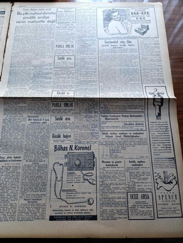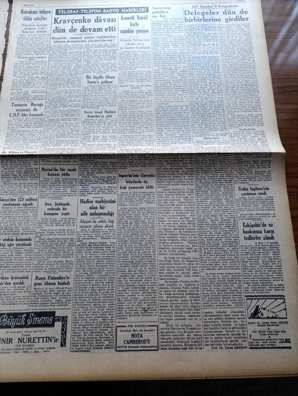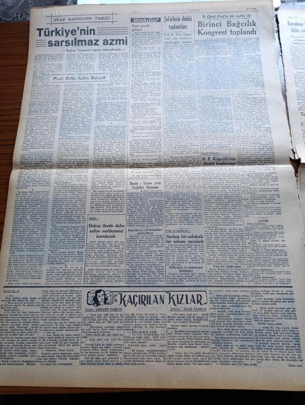 Ulus Gazetesi - 22 Mart 1949 - Cumhurbaşkanı İsmet İnönü'nün Dünkü Kabulleri - Tarım Bakanı Cavit Oral Bu Yılki Mahsul Durumu Şimdilik Endişe Verici Mahiyette Değil - Basın Yayın Yeni Teşkilat Kanunu - Peyami Safa Köşe Yazısı - Güreşçilerimizin İsveç'teki Zaferi - Kaçırılan Kızlar Yazan Gerard Fairlie Yazı Dizisi - Ehliyetsiz Ve Numarasız Bisikletler - İran Şahı Radyoda Bir Konuşma Yaptı - İskeçe'den 123 Mülteci Yurdumuza Sığındı - Harta Genel Müdürü Kadri Koray Amerika'ya Gitti - Berlin'de Ölüm Çeviren Orhan Veli Kanık - Filistin İçin Çarpıştığımız Günler Yazan M. Şevki Yazman Yazı Dizisi - Berlin'de Ölüm Çeviren Orhan Veli Kanık - Türkiye Avusturya Milli Maçına Dair - Ankara Santranç Şampiyonası - Yüksek Okullar Arası Maçlar - Cumhurbaşkanlığı Filarmonik Orkestrası - Ege Ve Efe Sabunları - Parla Emlak - Ankara Yayla Makarna - BIF Sanayi Fuarı - Kibarsil Çamaşırları Çabuk Temizler - Kurtuluş Eczanesi - Leyla Hüsnü - Yusuf Hüsnü - Sabite Tur Gülerman - Feyzi Aslangil - Kemani Haydar adlı eser, Kitap > Süreli Yayınlar > Gazeteler > Türkiye > Genel > Günlük kategorisinde İkinci El olarak satıştadır.