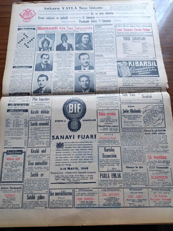 Ulus Gazetesi - 22 Mart 1949 - Cumhurbaşkanı İsmet İnönü'nün Dünkü Kabulleri - Tarım Bakanı Cavit Oral Bu Yılki Mahsul Durumu Şimdilik Endişe Verici Mahiyette Değil - Basın Yayın Yeni Teşkilat Kanunu - Peyami Safa Köşe Yazısı - Güreşçilerimizin İsveç'teki Zaferi - Kaçırılan Kızlar Yazan Gerard Fairlie Yazı Dizisi - Ehliyetsiz Ve Numarasız Bisikletler - İran Şahı Radyoda Bir Konuşma Yaptı - İskeçe'den 123 Mülteci Yurdumuza Sığındı - Harta Genel Müdürü Kadri Koray Amerika'ya Gitti - Berlin'de Ölüm Çeviren Orhan Veli Kanık - Filistin İçin Çarpıştığımız Günler Yazan M. Şevki Yazman Yazı Dizisi - Berlin'de Ölüm Çeviren Orhan Veli Kanık - Türkiye Avusturya Milli Maçına Dair - Ankara Santranç Şampiyonası - Yüksek Okullar Arası Maçlar - Cumhurbaşkanlığı Filarmonik Orkestrası - Ege Ve Efe Sabunları - Parla Emlak - Ankara Yayla Makarna - BIF Sanayi Fuarı - Kibarsil Çamaşırları Çabuk Temizler - Kurtuluş Eczanesi - Leyla Hüsnü - Yusuf Hüsnü - Sabite Tur Gülerman - Feyzi Aslangil - Kemani Haydar, Kasım Gülek tarafından kaleme alınmıştır. Ulus Gazetesi - 22 Mart 1949 - Cumhurbaşkanı İsmet İnönü'nün Dünkü Kabulleri - Tarım Bakanı Cavit Oral Bu Yılki Mahsul Durumu Şimdilik Endişe Verici Mahiyette Değil - Basın Yayın Yeni Teşkilat Kanunu - Peyami Safa Köşe Yazısı - Güreşçilerimizin İsveç'teki Zaferi - Kaçırılan Kızlar Yazan Gerard Fairlie Yazı Dizisi - Ehliyetsiz Ve Numarasız Bisikletler - İran Şahı Radyoda Bir Konuşma Yaptı - İskeçe'den 123 Mülteci Yurdumuza Sığındı - Harta Genel Müdürü Kadri Koray Amerika'ya Gitti - Berlin'de Ölüm Çeviren Orhan Veli Kanık - Filistin İçin Çarpıştığımız Günler Yazan M. Şevki Yazman Yazı Dizisi - Berlin'de Ölüm Çeviren Orhan Veli Kanık - Türkiye Avusturya Milli Maçına Dair - Ankara Santranç Şampiyonası - Yüksek Okullar Arası Maçlar - Cumhurbaşkanlığı Filarmonik Orkestrası - Ege Ve Efe Sabunları - Parla Emlak - Ankara Yayla Makarna - BIF Sanayi Fuarı - Kibarsil Çamaşırları Çabuk Temizler - Kurtuluş Eczanesi - Leyla Hüsnü - Yusuf Hüsnü - Sabite Tur Gülerman - Feyzi Aslangil - Kemani Haydar adlı eser Türkçe dilindedir.