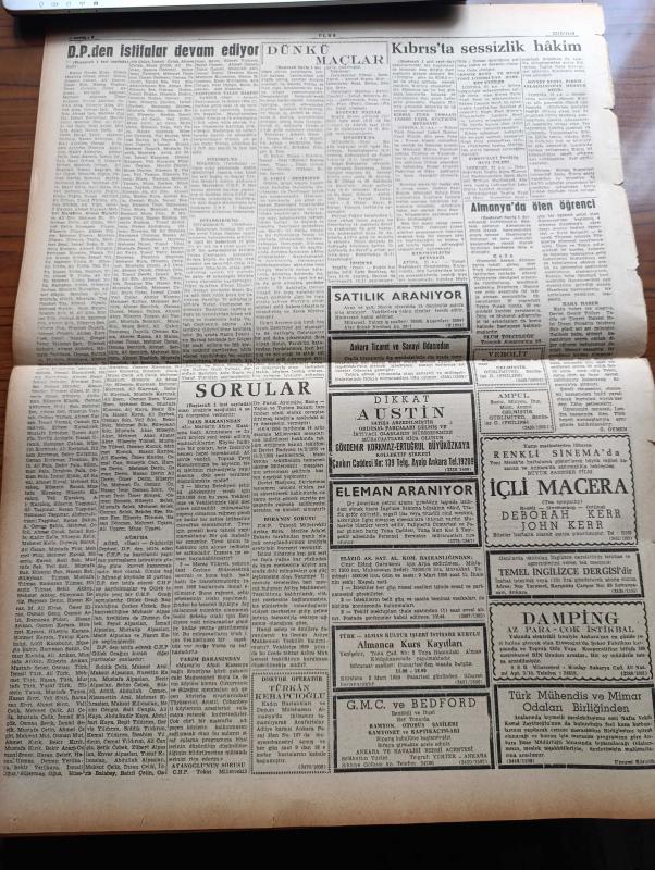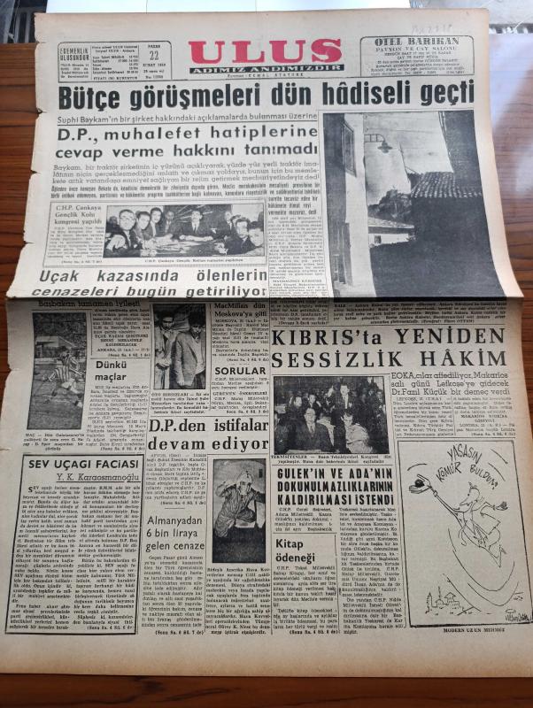 Ulus Gazetesi - 22 Şubat 1959 - Bütçe Görüşmeleri Dün Hadiseli Geçti - Suphi Baykam'ın Bir Şirket Hakkındaki Açıklamalarda Bulunması Üzerine Demokrat Parti Muhalefet Hatiplerine Cevap Verme Hakkını Tanımadı - Londra'da Vuku Bulan Uçak Kazasında Ölenlerin Cenazeleri Bugün Getiriliyor - Uçak Kazasından Kurtulan Başbakan Adnan Menderes Tamamen İyileşti - Galatasaray Ankara Şampiyonu Demirspor'u Yendi - Adalet İle Gençlerbirliği Berabere Kaldı - Sev Uçagı Faciası Yazan Yakup Kadri Karaosmanoğlu - İngiliz Başvekili Macmillan Dün Moskova'ya Gitti - Demokrat Parti'den İstifalar Devam Ediyor - Kıbrıs'ta Yeniden Sessizlik Hakim - Eoka'cılar Affediliyor - Makarios Salı Günü Lefkoşe'ye Gidecek - Doktor Fazıl Küçük Bir Demeç Verdi - Kasım Gülek Ve İhsan Ada'nın Dokunulmazlıklarının Kaldırılması İstendi - Kuklalar Yazan Oktay Verel Yazı Dizisi - Vergi Siyasetimiz Yazan Ahmet Cemal Yüksel - Musiki Dünyası - Denes Zsigmondy Ve Yalancının Mumu Yazan Bedii Sevin - Milli Kütüphane Mikrofilm Başuzmanı adlı eser, Kitap > Süreli Yayınlar > Gazeteler > Türkiye > Genel > Günlük kategorisinde İkinci El olarak satıştadır.
