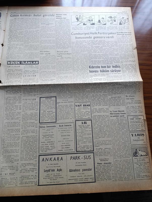 Ulus Gazetesi - 23 Ocak 1957 - Cumhuriyet Halk Partisi Şeker Konusunda Gensoru Verildi - Kıbrıs'ta Bir Türk Polisinin Öldürülmesi Üzerine Çıkan Hadiseler - Macmillan Lider Seçildi - İstanbul Ticaret Odasında Milli Korunma Kanunu da Tenkidler en Uğradı - Ender Rastlanan Meteorolojik Bir Olay Gökte Kıpkırmızı Bir Bulut Görüldü - Eğitim Bütçesinde Kavga Derecesinde Tartışmalar - Prenses Grace Kelly'nin Bebeğine Bakmak İçin Gelen Margaret Stahl - Konfüçyüs Ve Devlet Adamlığı Yazan Suphi Uzunca - Bir Zamanlar Rus Casusu İdim Anlatan Jean Sprecher Yazı Dizisi - İsrail Sina'yı Boşaltıyor - Sibirya Mahkumları Yazan Slavomir Rawicz Yazı Dizisi - Ölen Kim Öldüren Kim Bulgar Casusu Selmanof'un Maceraları Yazı Dizisi - Benelux Kumarhanesi - Galatasaray Fenerbahçe Basket Mücadelesi - Puşkaş Macaristana Dönecekmiş - Fenerbahçe Bugün İkinci Devreye Başlıyor - Galatasaray Ankaralılara Teşekkür Ediyor - Fay Temizleme Tozu - İstanbul Maçlarında Ankaralı Hakemler adlı eser, Kitap > Süreli Yayınlar > Gazeteler > Türkiye > Genel > Günlük kategorisinde İkinci El olarak satıştadır.