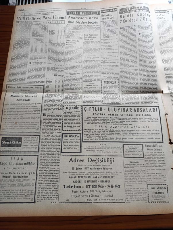 Ulus Gazetesi - 23 Şubat 1957 - Mecliste Bütçe Görüşmelerinin Üçüncü Günü - İçişleri Bakanı İle Osman Bölükbaşı Arasında Şiddetli Tartışmalar - Hani Devri Sabık Yaratılmayacaktı - Abdurrahman Fahri Ağaoğlu - Birleşmiş Milletler Siyasi Komisyonunda Kıbrıs Meselesi Karara Bağlandı - Hüseyin Cahit Yalçın - Yunanistan'da Taşkınlıklar - Selanikte Öğrenciler Amerikan Haberler Bürosuna Hücum Ettiler - CHP Kars Milletvekili Sırrı Atalay'ın Duruşması - İsrail Meselesinde Amerika İle İngiltere Arasında Görüş Ayrılığı - Milli Gelir Ve Para Hacmi Yazan Namık Zeki Aral - Sinema Film Tenkitleri Haberler Yazan Adnan Ufuk - Şinasi Nahit Berker Hakkındaki Dava Karara Kaldı - Cezayir Fransa'ya Karşı Savaşa Devam Edecek - Montesi Davası Devam Ediyor - Dini Siyasete Alet Eden Vaiz Fevzi Boyer Mahkûm Oldu - Bayburt Kurtuluşunu Kutladı - Fay Temizleme Tozu - Michael Kidd'in İlk Rejisörlüğü - Fenerbahçe İlk Maçını Bugün Güneşspor İle Yapıyor - İtalya Ordu Takımı Dün 10 Gazeteci İle Birlikte Geldi, Kasım Gülek tarafından kaleme alınmıştır. Ulus Gazetesi - 23 Şubat 1957 - Mecliste Bütçe Görüşmelerinin Üçüncü Günü - İçişleri Bakanı İle Osman Bölükbaşı Arasında Şiddetli Tartışmalar - Hani Devri Sabık Yaratılmayacaktı - Abdurrahman Fahri Ağaoğlu - Birleşmiş Milletler Siyasi Komisyonunda Kıbrıs Meselesi Karara Bağlandı - Hüseyin Cahit Yalçın - Yunanistan'da Taşkınlıklar - Selanikte Öğrenciler Amerikan Haberler Bürosuna Hücum Ettiler - CHP Kars Milletvekili Sırrı Atalay'ın Duruşması - İsrail Meselesinde Amerika İle İngiltere Arasında Görüş Ayrılığı - Milli Gelir Ve Para Hacmi Yazan Namık Zeki Aral - Sinema Film Tenkitleri Haberler Yazan Adnan Ufuk - Şinasi Nahit Berker Hakkındaki Dava Karara Kaldı - Cezayir Fransa'ya Karşı Savaşa Devam Edecek - Montesi Davası Devam Ediyor - Dini Siyasete Alet Eden Vaiz Fevzi Boyer Mahkûm Oldu - Bayburt Kurtuluşunu Kutladı - Fay Temizleme Tozu - Michael Kidd'in İlk Rejisörlüğü - Fenerbahçe İlk Maçını Bugün Güneşspor İle Yapıyor - İtalya Ordu Takımı Dün 10 Gazeteci İle Birlikte Geldi adlı eser Türkçe dilindedir.