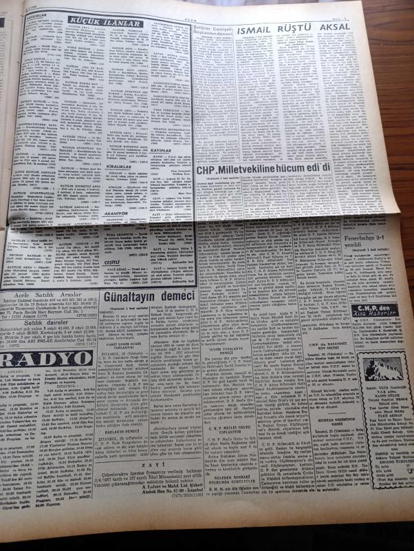Ulus Gazetesi - 24 Şubat 1958 - Meclis'te Cumhuriyet Halk Partisi Milletvekiline Hücum Edildi- İsmail Rüştü Aksal Dün Basın Toplantısı Yaptı - Cumhuriyet Halk Partisi Meclis Grubu Tebliği - Londra'da Kıbrıs İçin Büyük Miting Yapıldı - Cumhurbaşkanlığı Danıştay Sayıştay Ve İstatistik Bütçeleri Çıktı - Amerika Türkiye Ve Harp Gemisi Veriyor - Fenerbahçe Dün Kasımpaşa'ya Yenildi - Şoförler Cemiyeti Başkanının Demeci A,dan Z'ye Kadar Yedek Parça Yoktur - Karapürçek Yazan M. Sunullah Arısoy Yazı Dizisi - Ardahan Ve Artvin'in Kurtuluşu Yazan Şevki Berker - Viyolonsel Resitali Yarın - Tarihte Bugün Osman Hamdi Bey'in Ölümü - Rus Lideri Kruşçev Batıyı Tehdit Ediyor - Tokat Milletvekili Şahap Kitapçının Konuşmaları - Diyanet İşleri Bütçesi - Ankara İstanbul Radyosu Programı - Silviya Kabiliyet Avcısı Çizgi Roman - Baykara Attila'nın Sesi Çizgi Roman - Osmanlı Bankası - Pamukbank - Havilland Krem - Kurtuluş Sineması - Bir Avuç Toprak Filmi Başrolde Ayhan Işık - Günün Kadını Filmi adlı eser, Kitap > Süreli Yayınlar > Gazeteler > Türkiye > Genel > Günlük kategorisinde İkinci El olarak satıştadır.