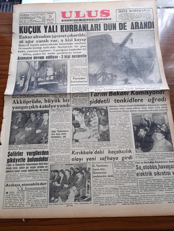 Ulus Gazetesi - 26 Ocak 1959 - Küçükyalı Neşe Sineması Kurbanları Dün De Arandı - Enkaz Altından 34 Ceset Çıkarıldı 26 Ağır Yaralı Var 9 Kişi Kayıp - Akköprü'de Büyük Bir Yangın Çıktı 4 Atelye Yandı - Türkiye Şoförler Ve Otomobilciler Federasyonu Vergilerden Şikayette Bulundu - Yakup Kadri Karaosmanoğlu Köşe Yazısı - Ankara Valisi Ve Belediye Başkanı Dilaver Argun Su Otobüs Havagazı Elektrik Sıkıntısı Var - Celal Yardımcı Basın Hür Üniversite Muhtardır Dedi - Kuklalar Yazan Oktay Verel Yazı Dizisi - Neron Çizen Ve Yazan Yalçın Çetin - Behram Öcal'ın Konuşması - Rauf Bayındır'ın Konuşması - Galatasaray Balosunda Bir Fenerbahçeli - Dikbaş Eğikbaş Karabaş Çizen Eflatun Nuri - Memetle Memet Yazan Ve Çizen Tonguç Yaşar - 4 Yıl İçinde 6 Güney Amerika Diktatörü Devrildi - Ankara'da Sinemalar Ve Tiyatrolar Programı - Beşiktaş İle Fenerbahçe Dün Yenişemedi - lise Ve Meslek Okulları Futbol Şampiyonasında Gazi Lisesi Şampiyon - Vezüv Gaz Ocakları - Vita Yağ - Derman Ağrı Kesici - Başak Bisküvi, Kemal Atatürk Kasım Gülek tarafından kaleme alınmıştır. Ulus Gazetesi - 26 Ocak 1959 - Küçükyalı Neşe Sineması Kurbanları Dün De Arandı - Enkaz Altından 34 Ceset Çıkarıldı 26 Ağır Yaralı Var 9 Kişi Kayıp - Akköprü'de Büyük Bir Yangın Çıktı 4 Atelye Yandı - Türkiye Şoförler Ve Otomobilciler Federasyonu Vergilerden Şikayette Bulundu - Yakup Kadri Karaosmanoğlu Köşe Yazısı - Ankara Valisi Ve Belediye Başkanı Dilaver Argun Su Otobüs Havagazı Elektrik Sıkıntısı Var - Celal Yardımcı Basın Hür Üniversite Muhtardır Dedi - Kuklalar Yazan Oktay Verel Yazı Dizisi - Neron Çizen Ve Yazan Yalçın Çetin - Behram Öcal'ın Konuşması - Rauf Bayındır'ın Konuşması - Galatasaray Balosunda Bir Fenerbahçeli - Dikbaş Eğikbaş Karabaş Çizen Eflatun Nuri - Memetle Memet Yazan Ve Çizen Tonguç Yaşar - 4 Yıl İçinde 6 Güney Amerika Diktatörü Devrildi - Ankara'da Sinemalar Ve Tiyatrolar Programı - Beşiktaş İle Fenerbahçe Dün Yenişemedi - lise Ve Meslek Okulları Futbol Şampiyonasında Gazi Lisesi Şampiyon - Vezüv Gaz Ocakları - Vita Yağ - Derman Ağrı Kesici - Başak Bisküvi adlı eser Türkçe dilindedir.