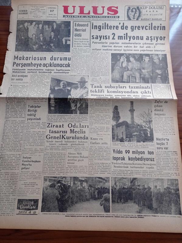 Ulus Gazetesi - 27 Mart 1957 - İngiltere'de Grevcilerin Sayısı 2 Milyonu Aşıyor - Makarios'un Durumu Perşembeye Açıklanacak - Fransa Eski Başbakanlarından Edouard Herriot Öldü - Yılda 99 Milyon Ton Toprak Kaybediyoruz - Hüseyin Cahit Yalçın - İtalyan Cumhurbaşkanı Gioavanni Gronchi Mayıs'ta Geliyor - Devlet Kuşu Yazan Orhan Kemal - Yunus Kazım Köni - Beş Cezayirli Milliyetçi Dün İdam Edildi - Yakup Kadri Karaosmanoğlu - Suriye De Hükümet İle Ordu Arasındaki Anlaşmazlık Arttı - Neden Filozof Yok - Bir Kadın Olarak Hellen Keller - Bir Gerçek Sanatçı Şarlo Charlie Chaplin - İstanbul Profesyonellerinin Sonunculuk Maçını İdare Edecek Olan İtalyan Hakem Carlo Massio - Tamek Domates Salçası - Komili Banyo Sabunu, Kasım Gülek tarafından kaleme alınmıştır. Ulus Gazetesi - 27 Mart 1957 - İngiltere'de Grevcilerin Sayısı 2 Milyonu Aşıyor - Makarios'un Durumu Perşembeye Açıklanacak - Fransa Eski Başbakanlarından Edouard Herriot Öldü - Yılda 99 Milyon Ton Toprak Kaybediyoruz - Hüseyin Cahit Yalçın - İtalyan Cumhurbaşkanı Gioavanni Gronchi Mayıs'ta Geliyor - Devlet Kuşu Yazan Orhan Kemal - Yunus Kazım Köni - Beş Cezayirli Milliyetçi Dün İdam Edildi - Yakup Kadri Karaosmanoğlu - Suriye De Hükümet İle Ordu Arasındaki Anlaşmazlık Arttı - Neden Filozof Yok - Bir Kadın Olarak Hellen Keller - Bir Gerçek Sanatçı Şarlo Charlie Chaplin - İstanbul Profesyonellerinin Sonunculuk Maçını İdare Edecek Olan İtalyan Hakem Carlo Massio - Tamek Domates Salçası - Komili Banyo Sabunu adlı eser Türkçe dilindedir.