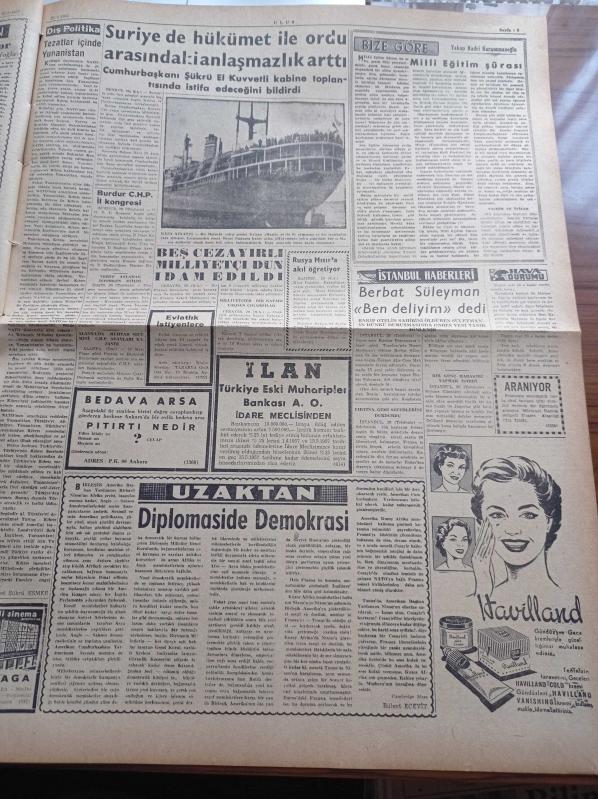 Ulus Gazetesi - 27 Mart 1957 - İngiltere'de Grevcilerin Sayısı 2 Milyonu Aşıyor - Makarios'un Durumu Perşembeye Açıklanacak - Fransa Eski Başbakanlarından Edouard Herriot Öldü - Yılda 99 Milyon Ton Toprak Kaybediyoruz - Hüseyin Cahit Yalçın - İtalyan Cumhurbaşkanı Gioavanni Gronchi Mayıs'ta Geliyor - Devlet Kuşu Yazan Orhan Kemal - Yunus Kazım Köni - Beş Cezayirli Milliyetçi Dün İdam Edildi - Yakup Kadri Karaosmanoğlu - Suriye De Hükümet İle Ordu Arasındaki Anlaşmazlık Arttı - Neden Filozof Yok - Bir Kadın Olarak Hellen Keller - Bir Gerçek Sanatçı Şarlo Charlie Chaplin - İstanbul Profesyonellerinin Sonunculuk Maçını İdare Edecek Olan İtalyan Hakem Carlo Massio - Tamek Domates Salçası - Komili Banyo Sabunu adlı eser, Kitap > Süreli Yayınlar > Gazeteler > Türkiye > Genel > Günlük kategorisinde İkinci El olarak satıştadır.