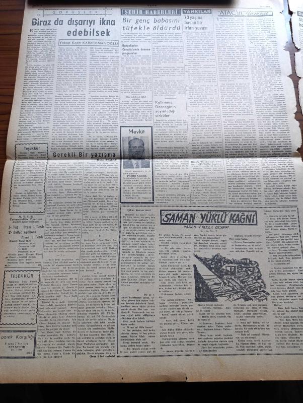 Ulus Gazetesi - 27 Ocak 1957 - Saman Yüklü Kağnı Yazan Fikret Otyam Yazı Dizisi- Pakistan'da Matem Nehru'nun Resimleri Yakıldı - Nizip'te Kaçakçılarla Çarpışmalar Oldu - Ortadoğu'ya Dair Amerikan Dışbakanı Dulles'in Sözleri - Türk İran Ticaret Anlaşması - Amerika'da Yakalanan Rus Casusları - Yakup Kadri Karaosmanoğlu Yazı Dizisi -73 Yaşına Basan Bir İrfan Yuvası İstanbul Erkek Lisesi - Birleşmiş Milletler Genel Sekreterinin Raporu İsrail'i Memnun Etmedi - Buğday Bankası - Yapı Ve Kredi Bankası - Şekerbank - Kral Suud Amerika Yolunda - Silviya Yüzme Havuzunda Çizgi Roman - Baykara Hz. Süleymanın Taşı Çizgi Roman -Çehov'dan Bir Hikaye Çeviren Leyla Dursunoğlu - Austria'lılar Dün Demirspor'u 2 1 Yendi - Bükreş Karması Dün İzmir'de Galip - Galatasaray Dün Liderliği Kaybetti - Fenerbahçe'nin Ve Milli Takımın Yemek Direği Dev Basketbolcu Altan Dinçer - Zeki Müren'in Eşsiz Eseri Berduş Büyük Ve Nur Sinemalarında - Cavga Dans Öğretim Stüdyosu - Yenişehir Ve Keçiören Galip - Ankara Karması adlı eser, Kitap > Süreli Yayınlar > Gazeteler > Türkiye > Genel > Günlük kategorisinde İkinci El olarak satıştadır.