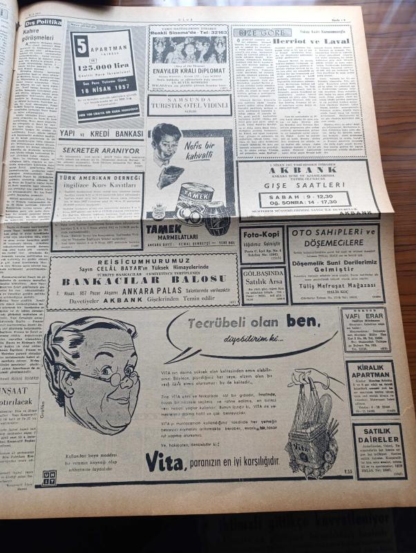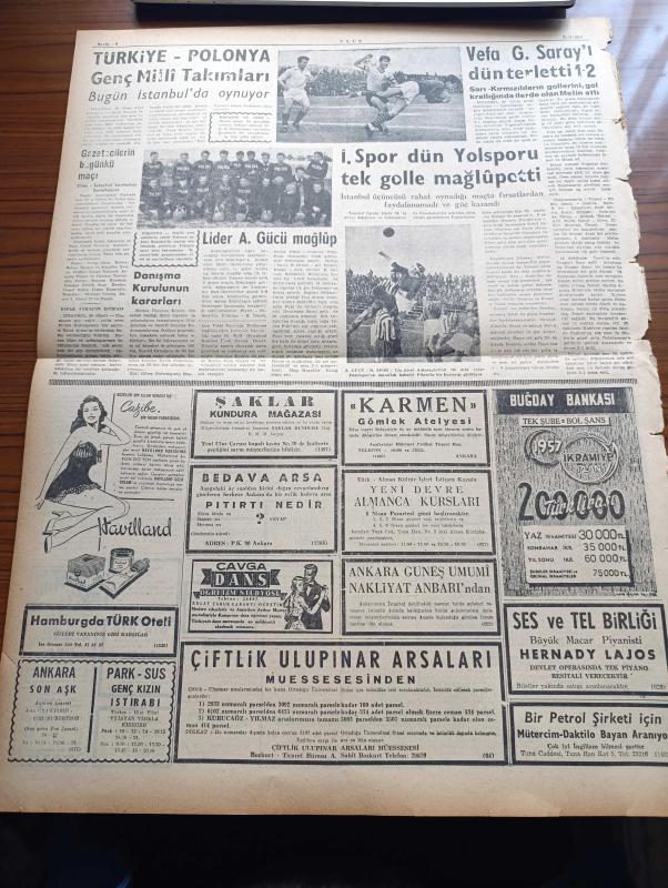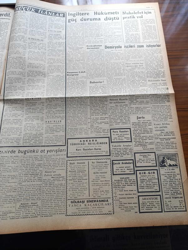 Ulus Gazetesi - 31 Mart 1957 - Kıbrıs'ta Rumlar Taşkınlığa Başladı - Lord Salisbury'nin İstifası Üzerine İngiltere Hükümeti Güç Duruma Düştü - Hüseyin Cahit Yalçın - Kuzey Afrika İçin Paris'te Nümayiş - Doktor Kamil Kırıkoğlunun Duruşmasına Dün Gizlilik Kararı Verildi - Ankara'nın En Büyük Kütüphanelerinden Umumi Kütüphane - Kasım Gülek'in İfadesi Alındı - Mısır Devlet Reisi Nasır Tehdide Baş Eğmeyeceğiz Dedi - İzmir de Bugünkü At Yarışları - Demiryolu İşçileri Zam İstiyorlar - Devlet Kuşu Yazan Orhan Kemal Yazı Dizisi - Ticaret Lisesinde Kahramanlık Günü - Tamek Marmeletları - Yakup Kadri Karaosmanoğlu - Vita Yağ - Yapı Ve Kredi Bankası - Peri Masalı Sona Erdi Marlon Brando İle Nişanlısı Fransız Balıkçı Kızı Ayrıldılar - Bir Gerçek Sanatçı Şarlo Charlie Chaplin Yazı Dizisi - Lider Ankaragücü Mağlup - Havilland Krem - Vefa Galatasaray'ı Dün Terletti - Karmen Gömlek Atölyesi - Gazetecilerin Bugünkü Maçı - Futbol Federasyonu Tek Seçicisi Eşref Aykaç'ın İstifası