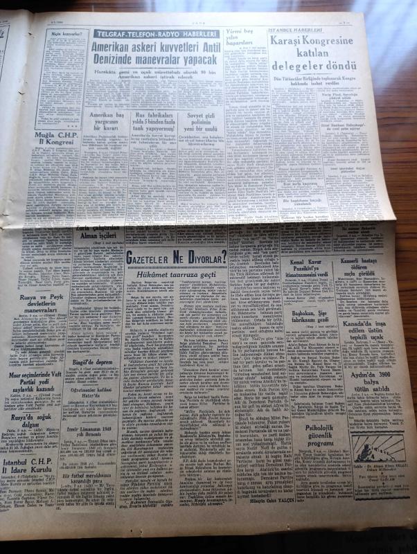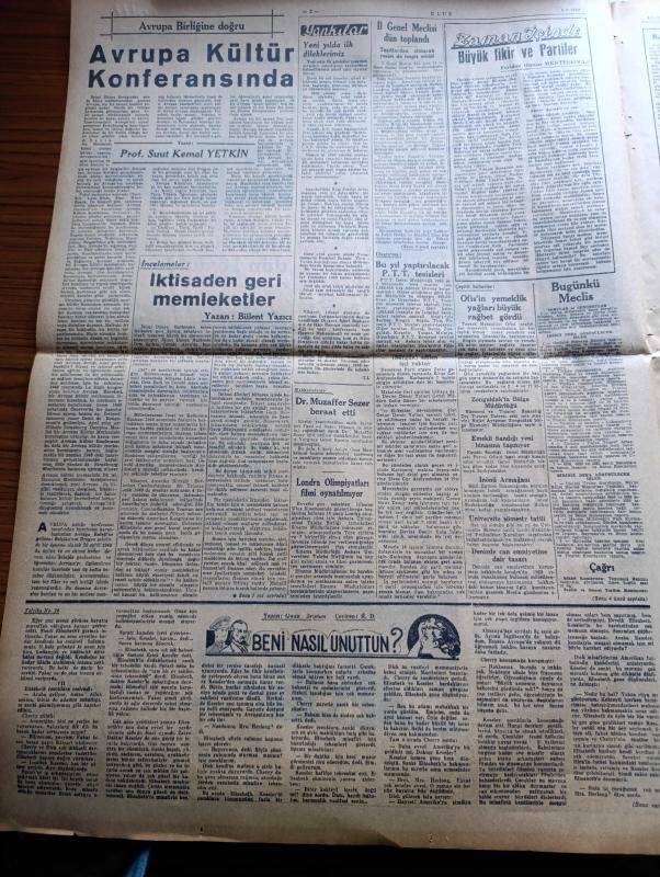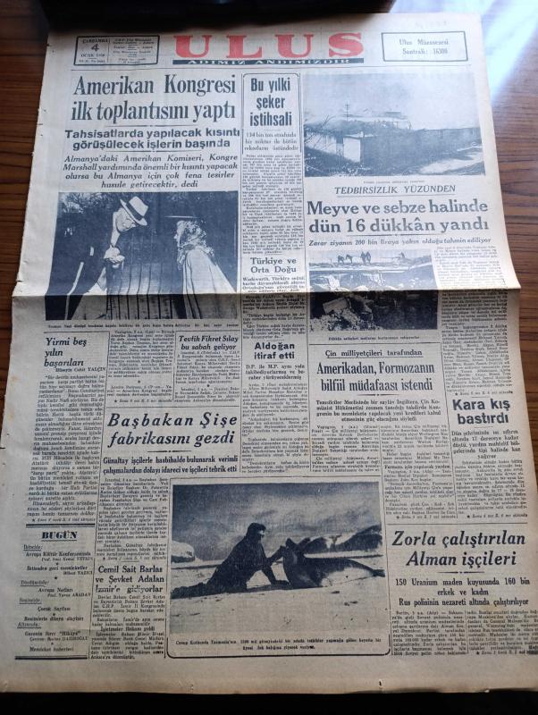 Ulus Gazetesi - 4 Ocak 1950 - Amerikan Kongresini İlk Toplantısını Yaptı - Hüseyin Cahit Yalçın Köşe Yazısı - Meyve Ve Sebze Halinde Dün 16 Dükkan Yandı - Başbakan Şemsettin Günaltay Şişe Fabrikasını Gezdi - Bu Yılki Şeker İhtisali - Zorla Çalıştırılmak Alman İşçileri - Beni Nasıl Unuttun Yazan Gwen Bristow Yazı - Toprak Mahsulleri Ofisinin Yemeklik Yağları Büyük Rağbet Gördü - Londra Olimpiyatları Filmi Oynatılmıyor - Amerikan Askeri Kuvvetleri Antil Denizinde Manevralar Yapacak - Zağrafyan Lisesi Basketbolcuları Geliyor - Kütle Psikolojisi Yazan Profesör Doktor Yavuz Abadan - Çocuk Köşesi - Tarihi Hikaye Tekfurun Düğününde Kopan Kavga - Resimlerle Dünya Olayları - Açan Kamarası İnşaatı Bitiyor - Hikaye Gecenin Sırrı Yazan Jacques Andrie - Öküz Baş Çiviti - Taklit Sanatının Rekorunu Kıran Cevat Kurtuluş - Bulmaca - Ankara İstanbul Radyosu Programı - Reosil Öksürüğü Keser - Hazin Aşk Filmi Ulus Sinemasında - Sadık Aldoğan İtiraf Etti adlı eser, Kitap > Süreli Yayınlar > Gazeteler > Türkiye > Genel > Günlük kategorisinde İkinci El olarak satıştadır.