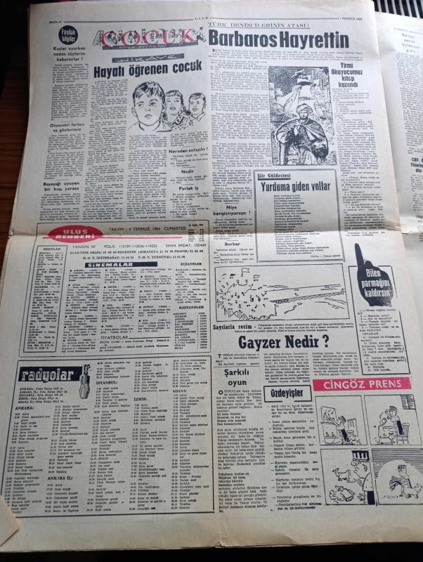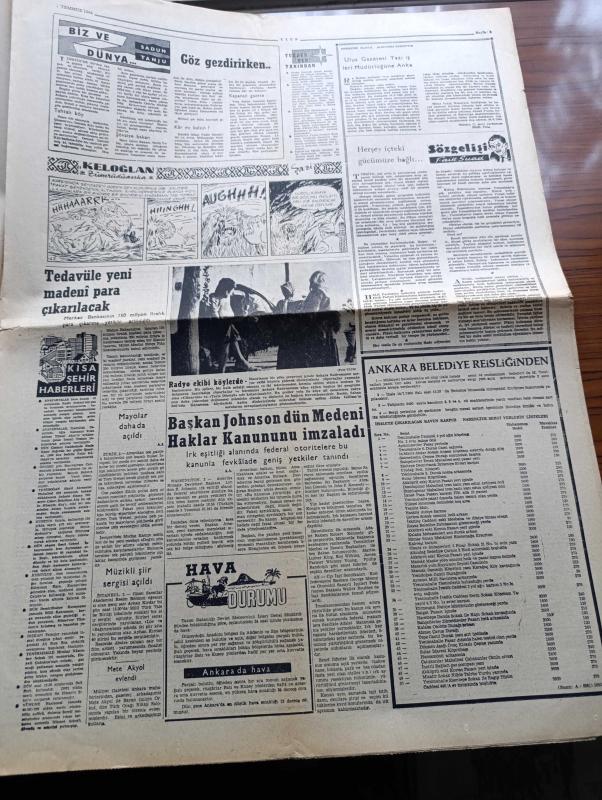 Ulus Gazetesi - 4 Temmuz 1964 - Değerli Misafirimiz Yazan Cihad Baban Köşe Yazısı - Pakistan ve İran Türkiye'nin Yanında - Pakistan Devlet Başkanı Eyüp Han Dün Geldi - Pakistan Dışişleri Bakanı Zülfikar Ali Butto - İran Dışişleri Bakanı Abbas Aram - Vietnam'a Gönderilen Uçaklar - Yunanistan Bir Konferans İçin Şart İleri Sürüyor - James Bond Yazan İan Fleming Çizen John Mclusky - Türk İngiliz Görüşmeleri Yazan Ahmet Şükrü Esmer Köşe Yazısı - Keloğlan Zümrüdüanka Çizen Şazi - Amerika Başkanı Johnson Dün Medeni Haklar Kanununun İmzaladı - Mayolar Daha Da Açıldı - Baykara Çizgi Roman - Doktor Fu Mançu Çizgi Roman - Hoppala Şevki - İkinci Dünya Savaşı'nda Alman Denizaltıları Yazan Saim Besbelli Yazı Dizisi - Hangi Okula Hangi Fakülteye - Çocuk Köşesi - Altay Kulübü Hakkında Tahkikat Açılıyor - Trabzon İdmanocağı Takımı Fotoğraf - 7. Uluslararası Ankara Tenis Turnuvası - Ulvi Yenal Kuraların Çekiminde Galatasaray Ve Fenerbahçe'yi Temsil Edecek, Kemal Satır tarafından kaleme alınmıştır. Ulus Gazetesi - 4 Temmuz 1964 - Değerli Misafirimiz Yazan Cihad Baban Köşe Yazısı - Pakistan ve İran Türkiye'nin Yanında - Pakistan Devlet Başkanı Eyüp Han Dün Geldi - Pakistan Dışişleri Bakanı Zülfikar Ali Butto - İran Dışişleri Bakanı Abbas Aram - Vietnam'a Gönderilen Uçaklar - Yunanistan Bir Konferans İçin Şart İleri Sürüyor - James Bond Yazan İan Fleming Çizen John Mclusky - Türk İngiliz Görüşmeleri Yazan Ahmet Şükrü Esmer Köşe Yazısı - Keloğlan Zümrüdüanka Çizen Şazi - Amerika Başkanı Johnson Dün Medeni Haklar Kanununun İmzaladı - Mayolar Daha Da Açıldı - Baykara Çizgi Roman - Doktor Fu Mançu Çizgi Roman - Hoppala Şevki - İkinci Dünya Savaşı'nda Alman Denizaltıları Yazan Saim Besbelli Yazı Dizisi - Hangi Okula Hangi Fakülteye - Çocuk Köşesi - Altay Kulübü Hakkında Tahkikat Açılıyor - Trabzon İdmanocağı Takımı Fotoğraf - 7. Uluslararası Ankara Tenis Turnuvası - Ulvi Yenal Kuraların Çekiminde Galatasaray Ve Fenerbahçe'yi Temsil Edecek adlı eser Türkçe dilindedir.
