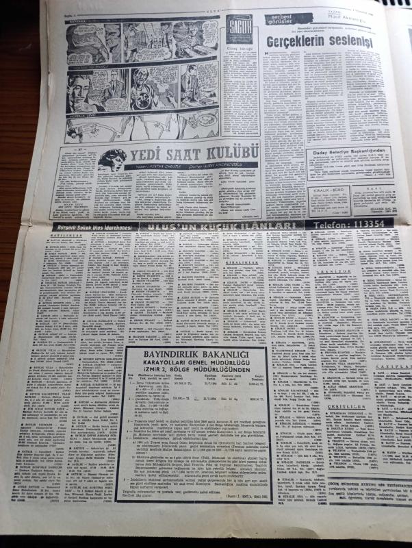 Ulus Gazetesi - 4 Temmuz 1964 - Değerli Misafirimiz Yazan Cihad Baban Köşe Yazısı - Pakistan ve İran Türkiye'nin Yanında - Pakistan Devlet Başkanı Eyüp Han Dün Geldi - Pakistan Dışişleri Bakanı Zülfikar Ali Butto - İran Dışişleri Bakanı Abbas Aram - Vietnam'a Gönderilen Uçaklar - Yunanistan Bir Konferans İçin Şart İleri Sürüyor - James Bond Yazan İan Fleming Çizen John Mclusky - Türk İngiliz Görüşmeleri Yazan Ahmet Şükrü Esmer Köşe Yazısı - Keloğlan Zümrüdüanka Çizen Şazi - Amerika Başkanı Johnson Dün Medeni Haklar Kanununun İmzaladı - Mayolar Daha Da Açıldı - Baykara Çizgi Roman - Doktor Fu Mançu Çizgi Roman - Hoppala Şevki - İkinci Dünya Savaşı'nda Alman Denizaltıları Yazan Saim Besbelli Yazı Dizisi - Hangi Okula Hangi Fakülteye - Çocuk Köşesi - Altay Kulübü Hakkında Tahkikat Açılıyor - Trabzon İdmanocağı Takımı Fotoğraf - 7. Uluslararası Ankara Tenis Turnuvası - Ulvi Yenal Kuraların Çekiminde Galatasaray Ve Fenerbahçe'yi Temsil Edecek adlı eser, Kitap > Süreli Yayınlar > Gazeteler > Türkiye > Genel > Günlük kategorisinde İkinci El olarak satıştadır.
